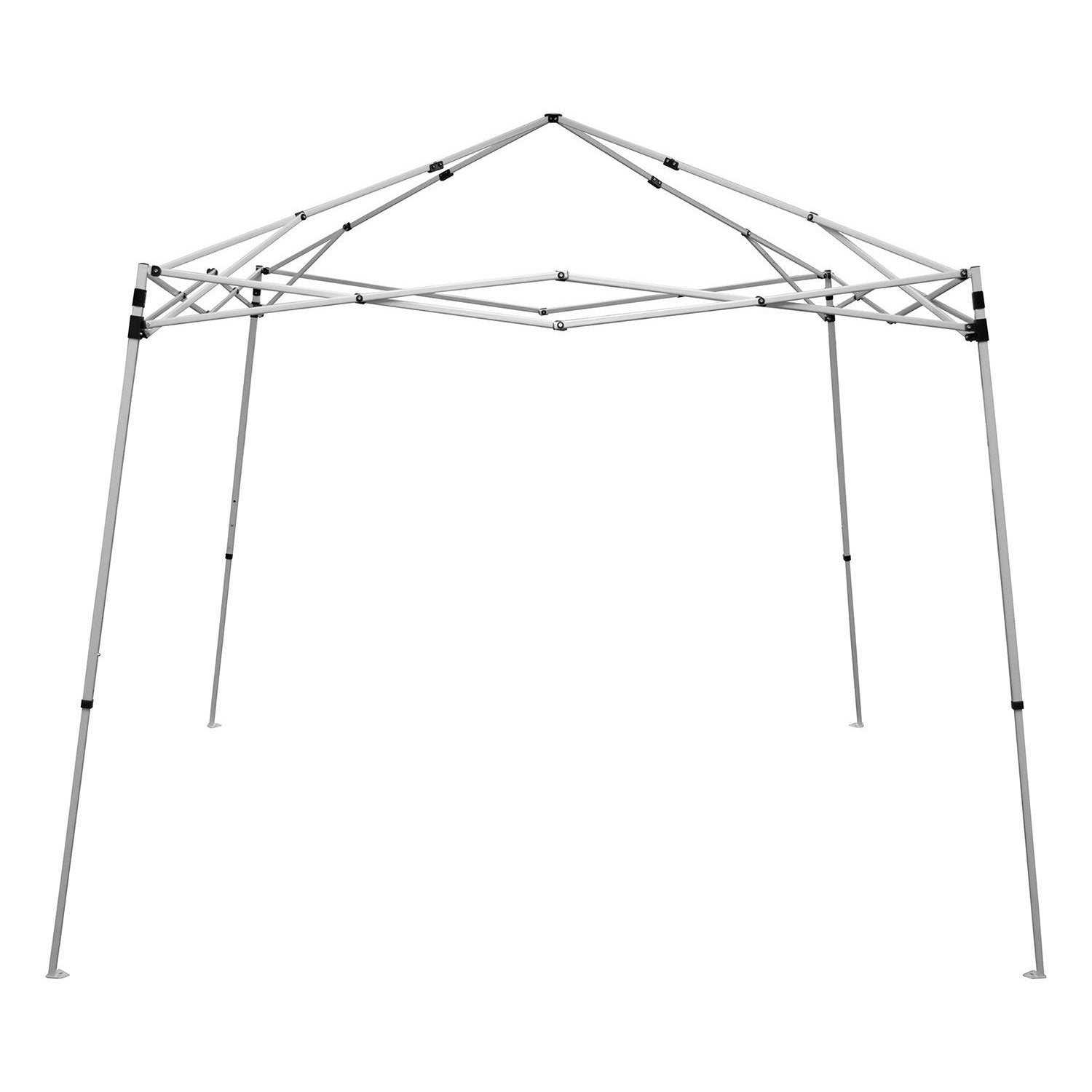 - Fully assembled slant leg pop up canopy with cathedral style, white powder coated steel frame for maximum head room