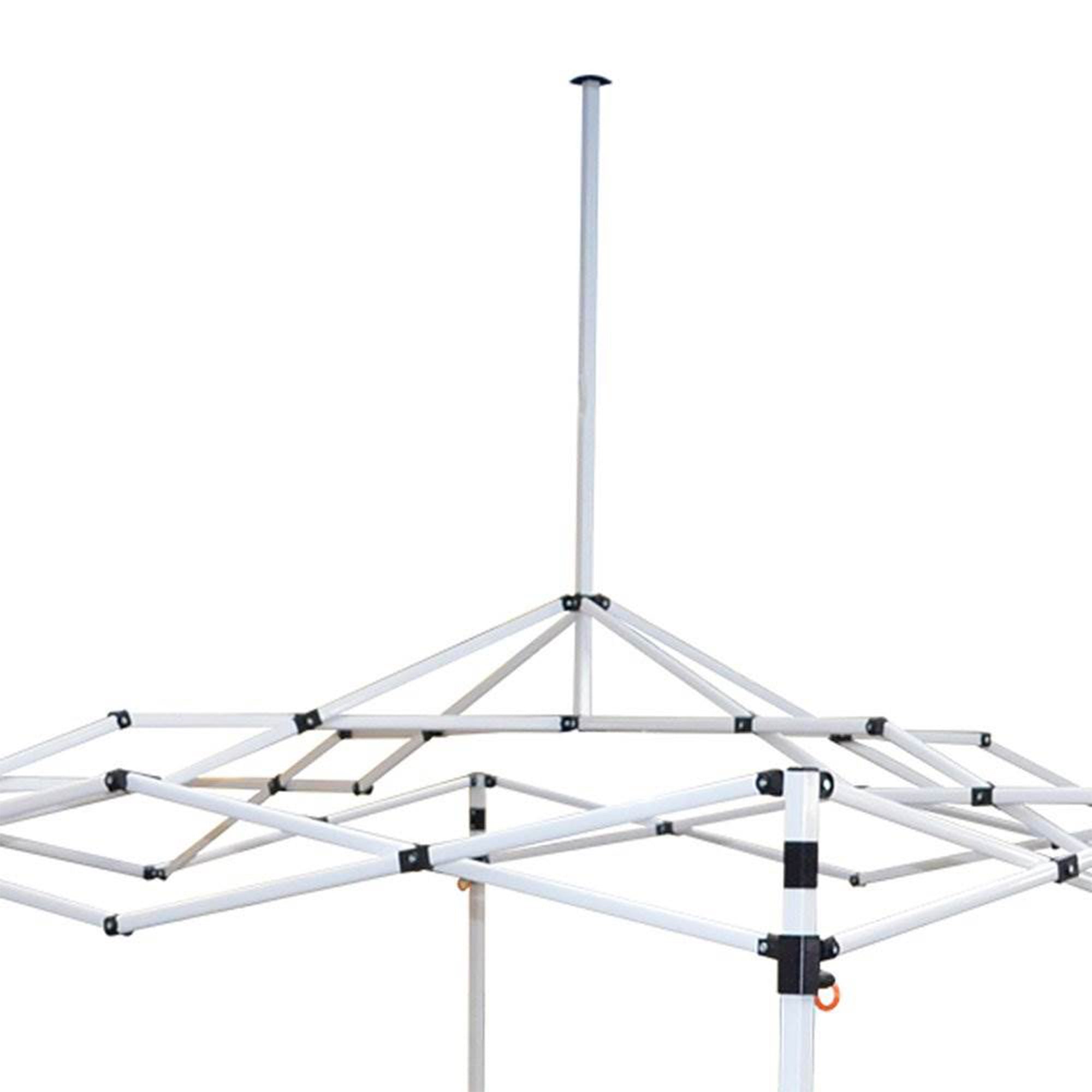 - Quick assembly shade tent with secure pull-pin sliders, 9 feet 9 inches peak height, 6 feet 3 in max clearance, and 3 adjustable height settings