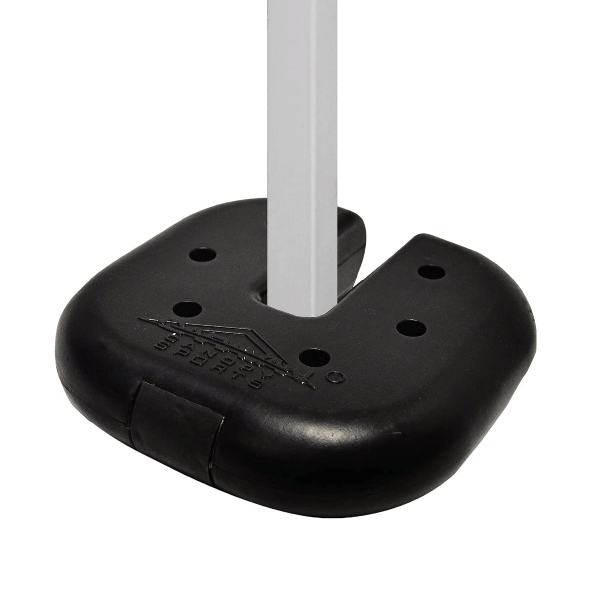 • Comes with (4) 6-pound black cement rubber-coated weights that add to your canopy’s wind stability and will not scratch or damage your canopy frame