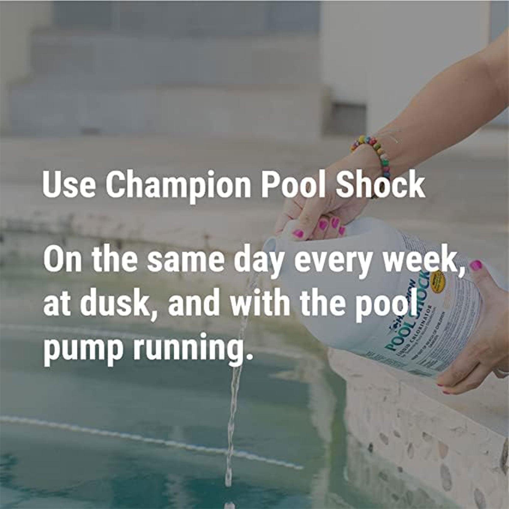 - Potent 12.5 percent liquid chlorinator to pour directly into your pool, initiating a shock and sanitization process that transforms your aquatic haven