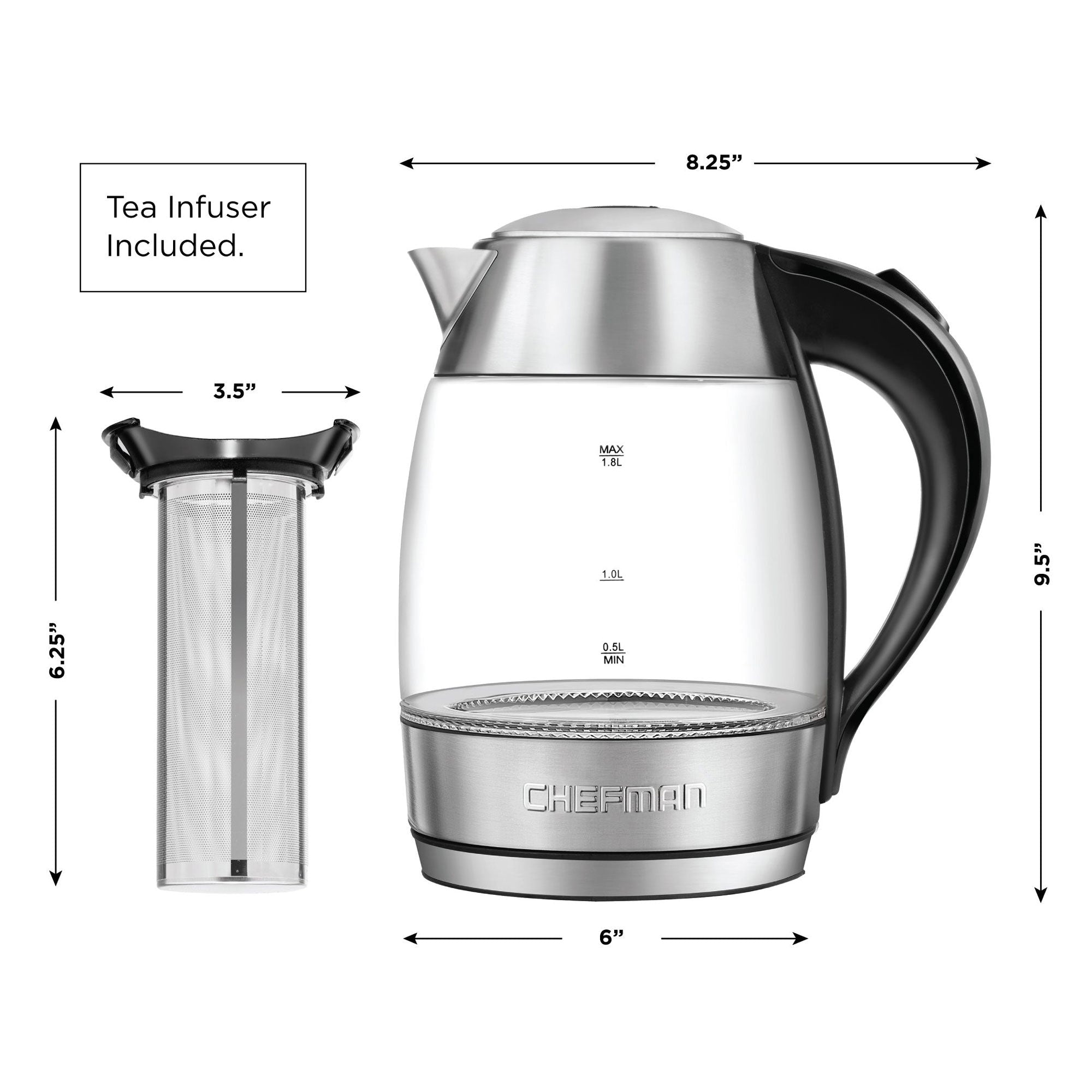 Chefman 1.8L Glass Electric Tea Kettle with Removable Tea Infuser (Refurbished)