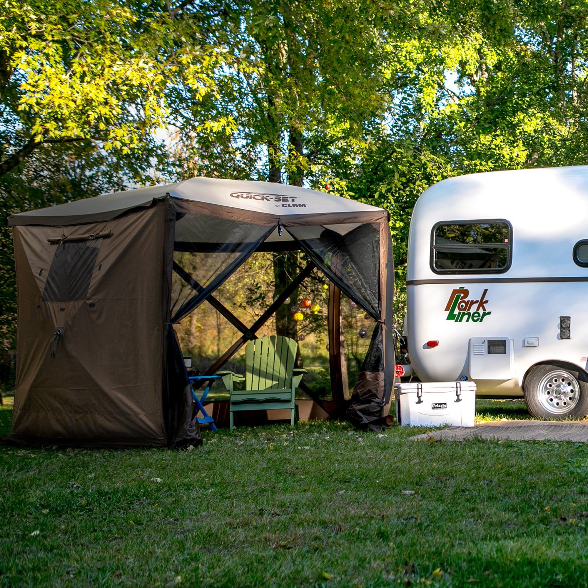 Clam Portable Outdoor Camping Canopy, Brown + Clam Quick Set Wind and Sun Panels
