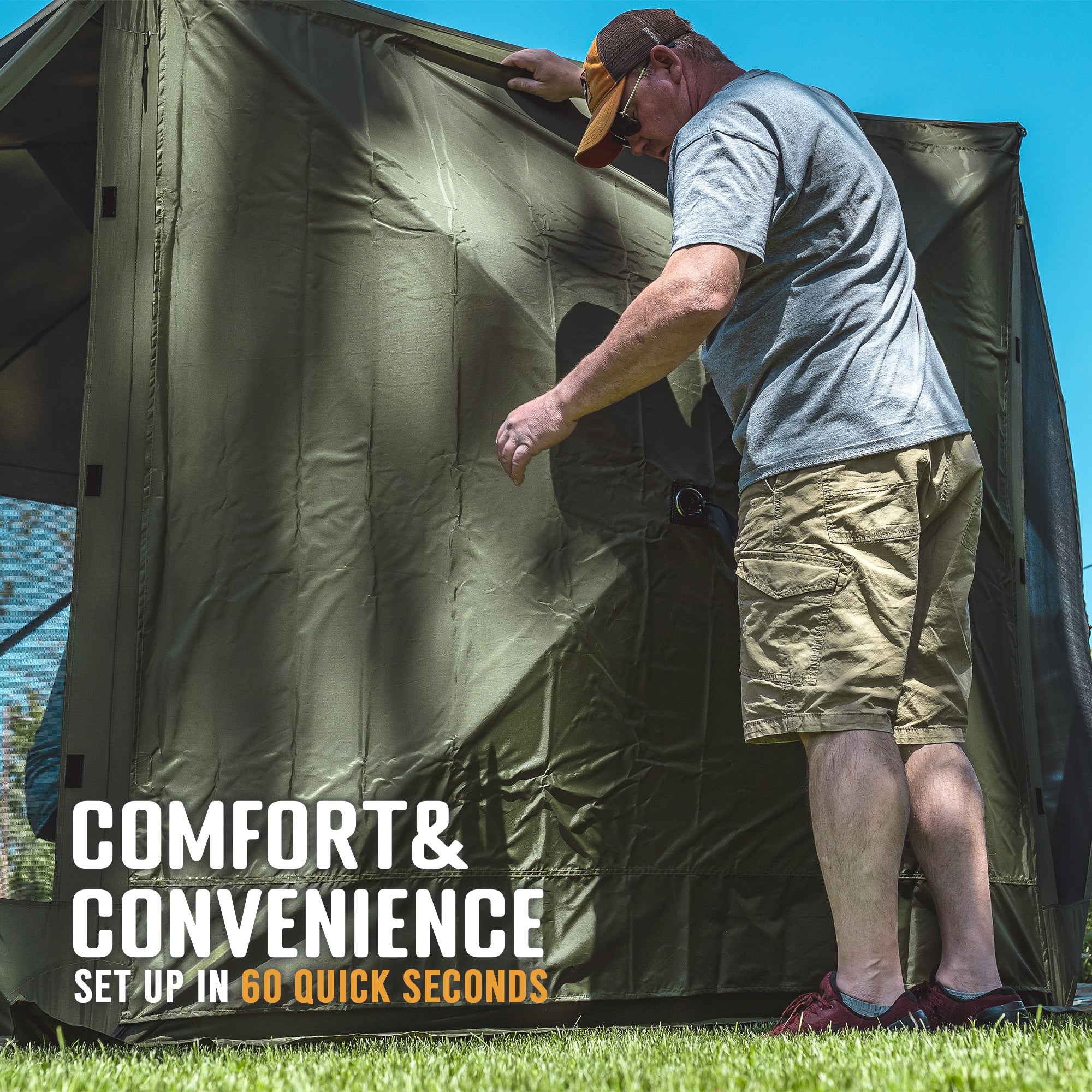 - Attaches to each side of the screen tent via D-rings and Velcro for easy installation