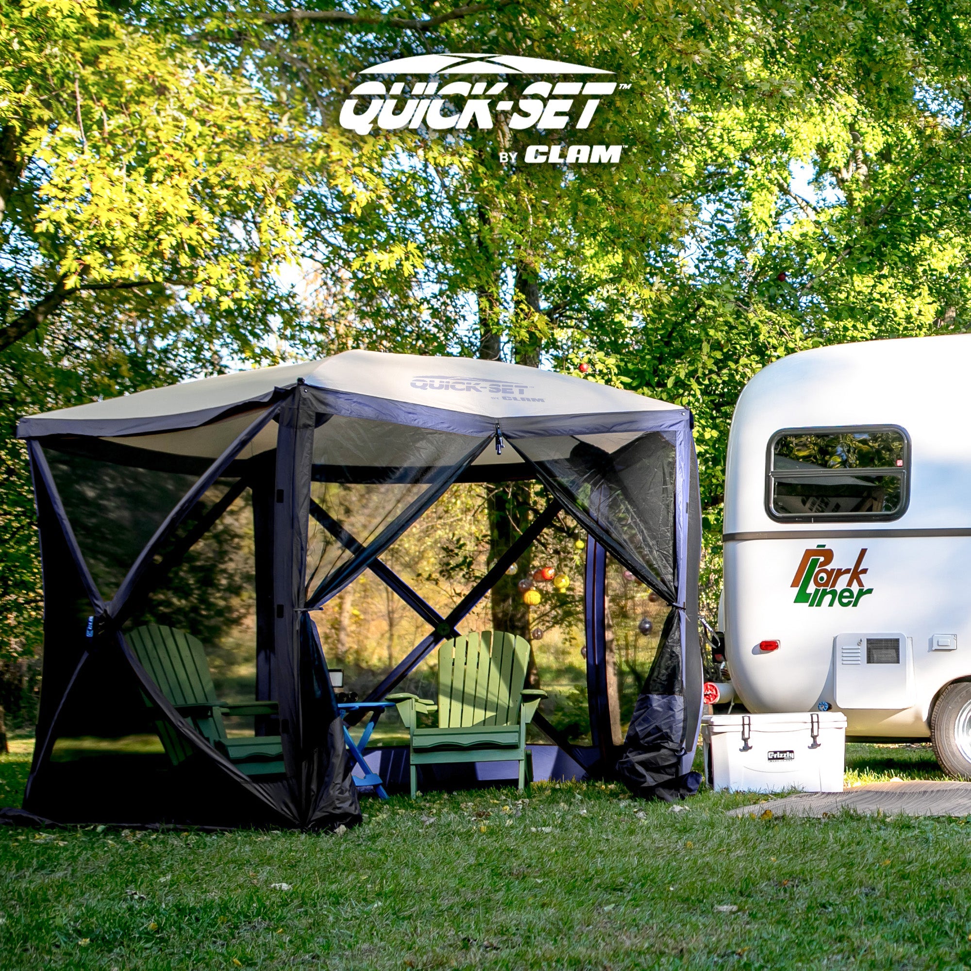 Enjoy the great outdoors come rain or shine with the ultimate combination of comfort and protection provided by the CLAM Quick-Set Escape Portable Outdoor Gazebo Canopy Shelter. This versatile shelter, measuring 11.5 by 11.5 by 7.5 feet, is perfect for gatherings, picnics, camping, or simply relaxing amidst nature's beauty. Its durable construction ensures resilience against the elements, while the easy setup means you can be sheltered in just about 45 seconds.