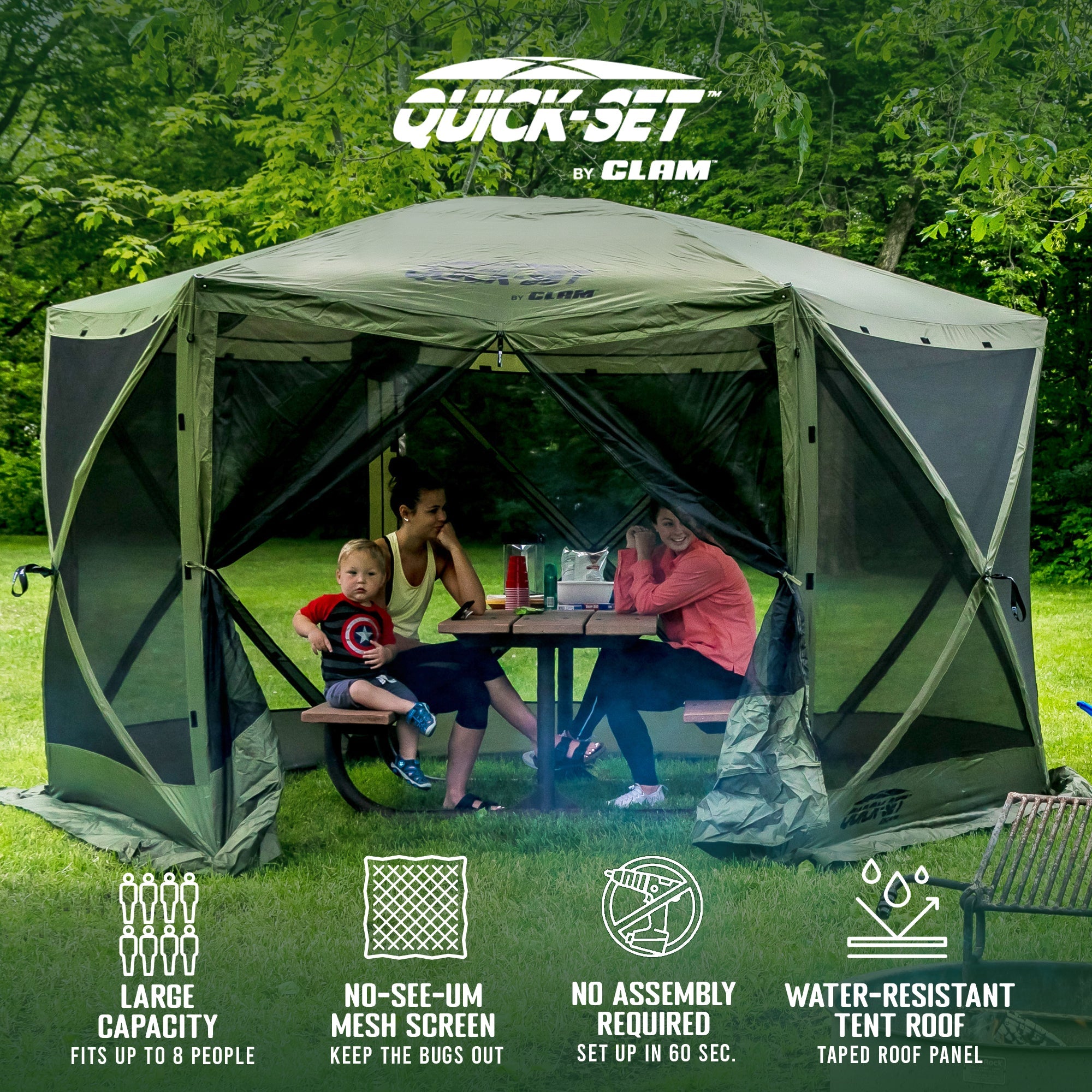Rain or shine, experience nature with comfort in your CLAM Quick Set Escape Portable Outdoor Gazebo Canopy Shelter.