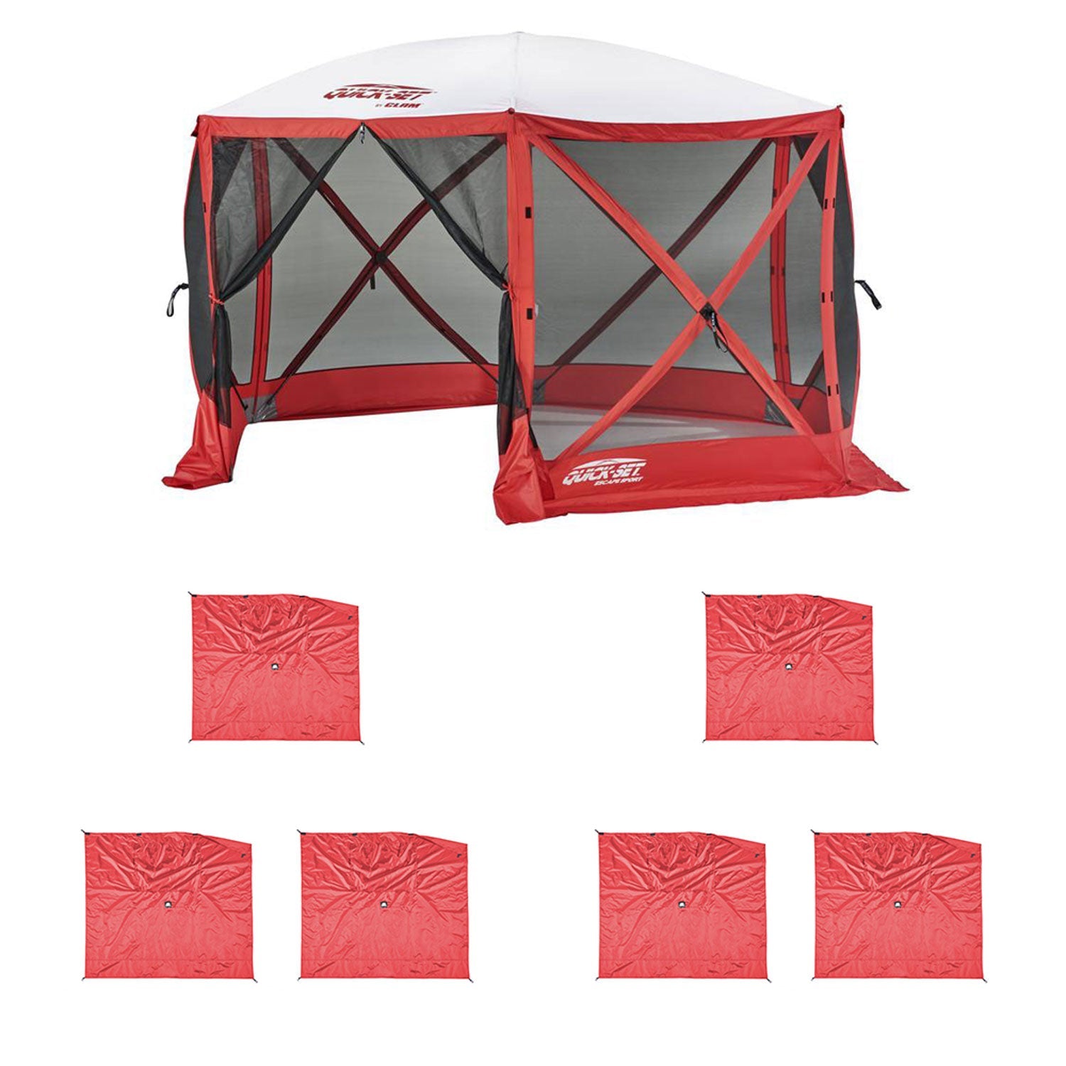 - Package includes the QuickSet Escape 11.5-Foot 8-Person Tailgating Tent, Red with the Clam Quick Set Screen Hub Red Fabric Wind & Sun Panels, Accessory Only (6 pack)