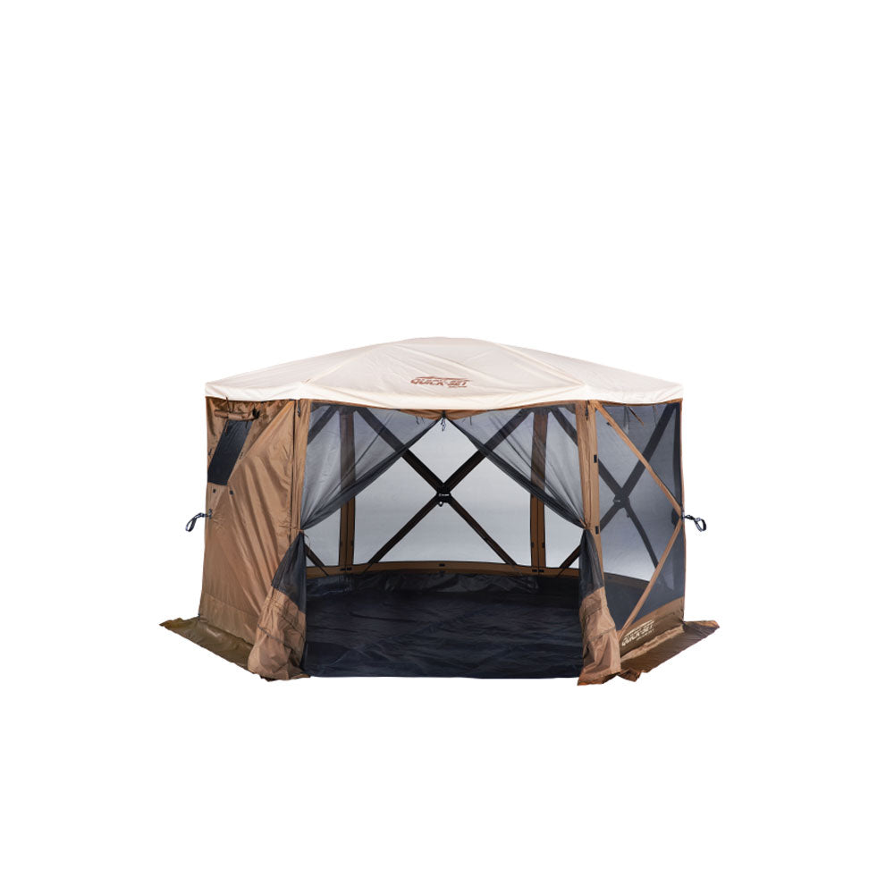 CLAM Quick-Set Pavilion Camper 12.5' x 12.5' Shelter, Brown w/Rain Fly Tarp, Tan