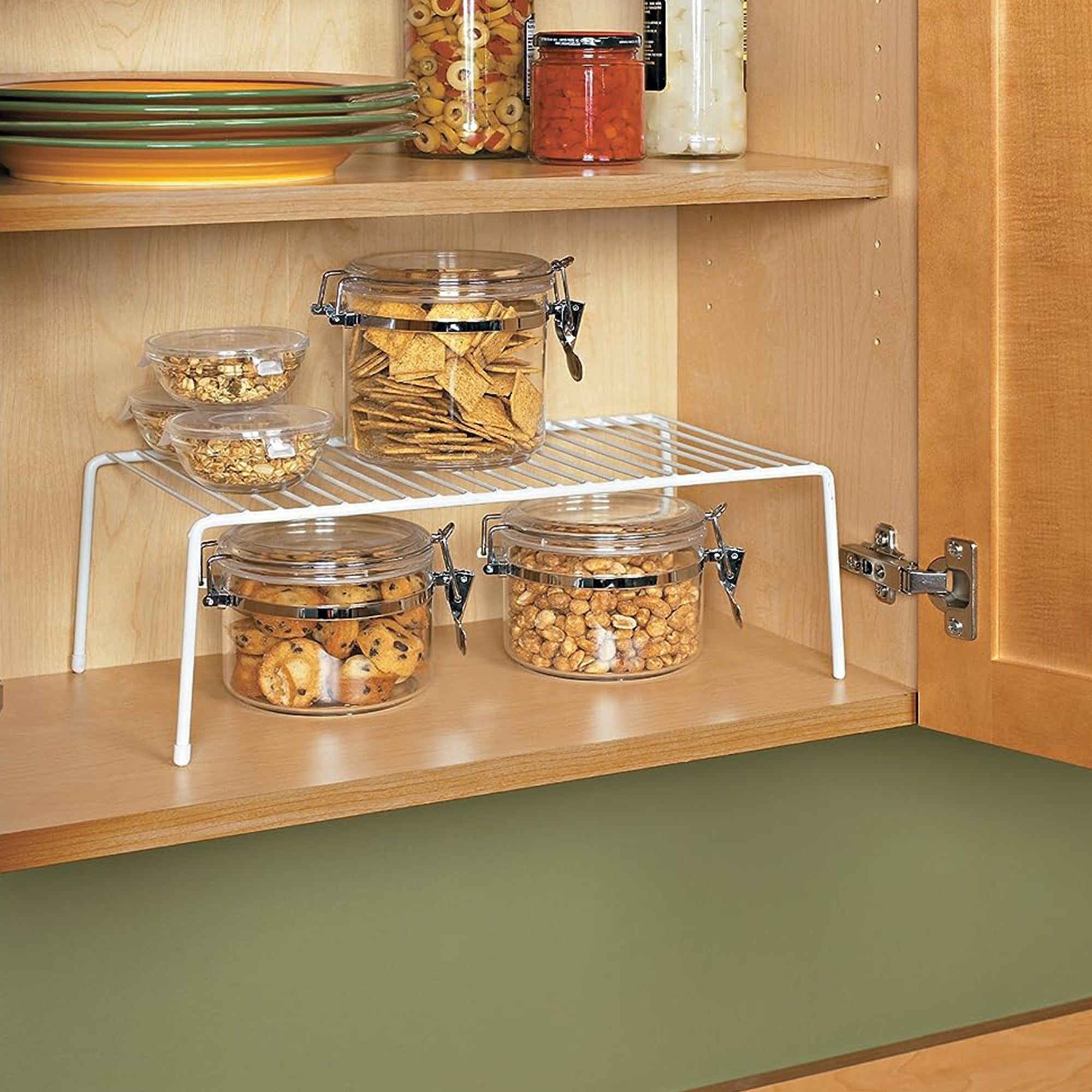 - Versatile shelf allows you to create extra tiers in your kitchen cabinets so you can stack dishes, canned goods, containers, and more