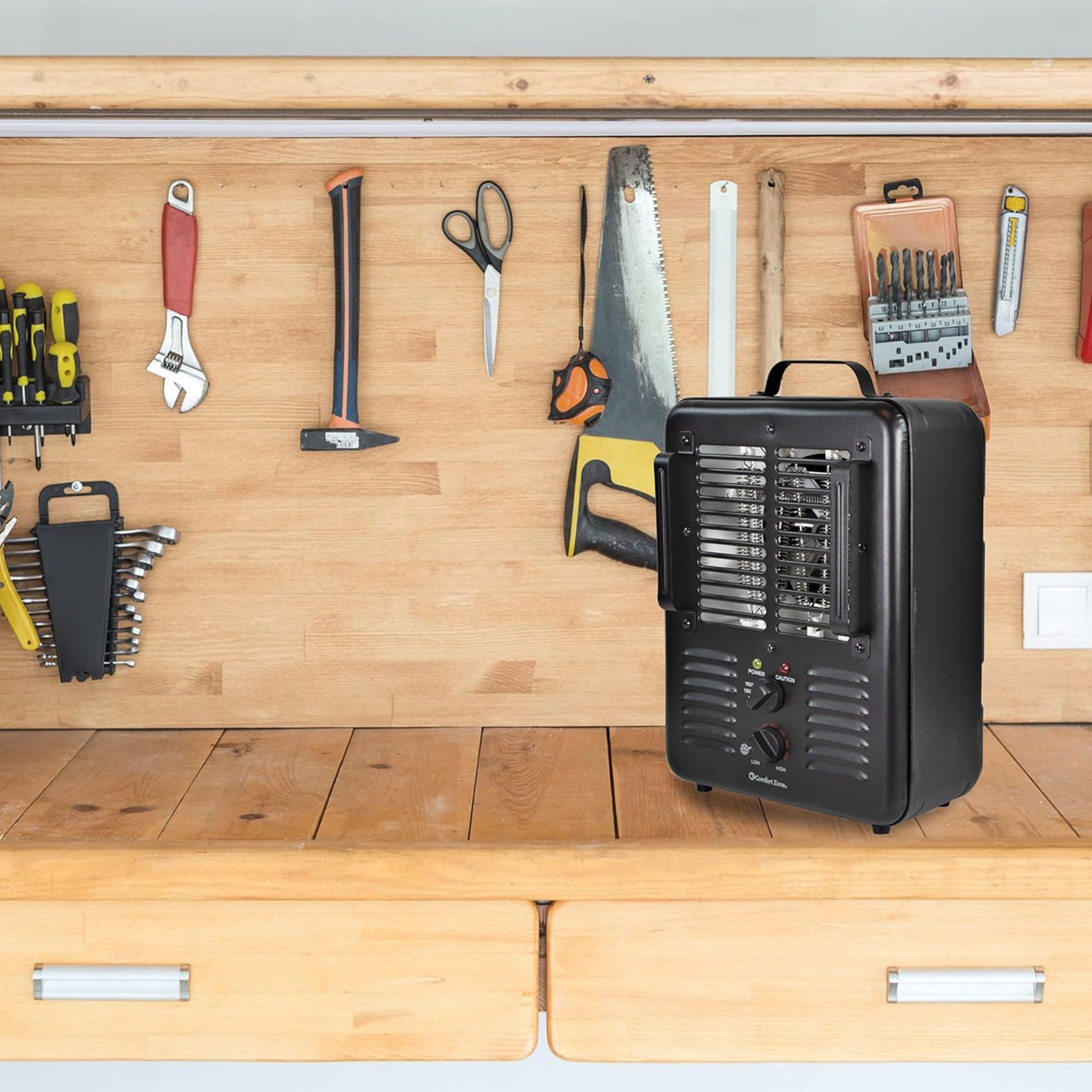 - Space heater delivers efficient warmth for enclosed garages or workshops, with 3 heat settings and a fan mode for versatile temperature control options