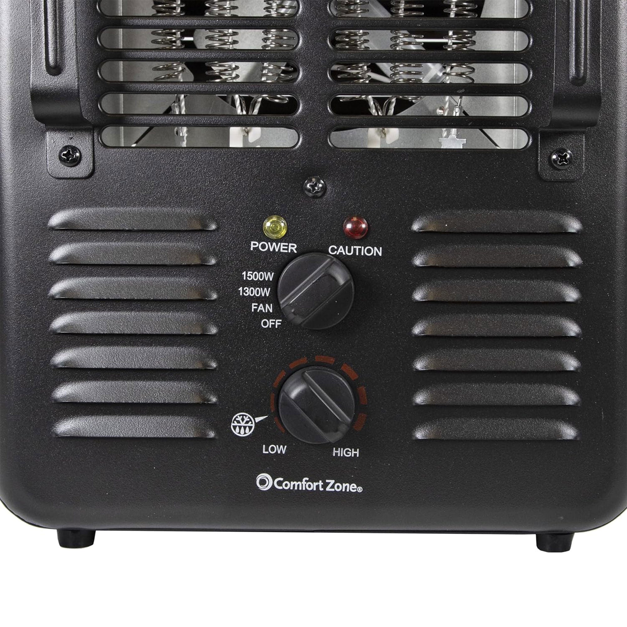 Comfort Zone 1500W Electric 3 Heat Utility Heater w/Adjustable Thermostat, Black