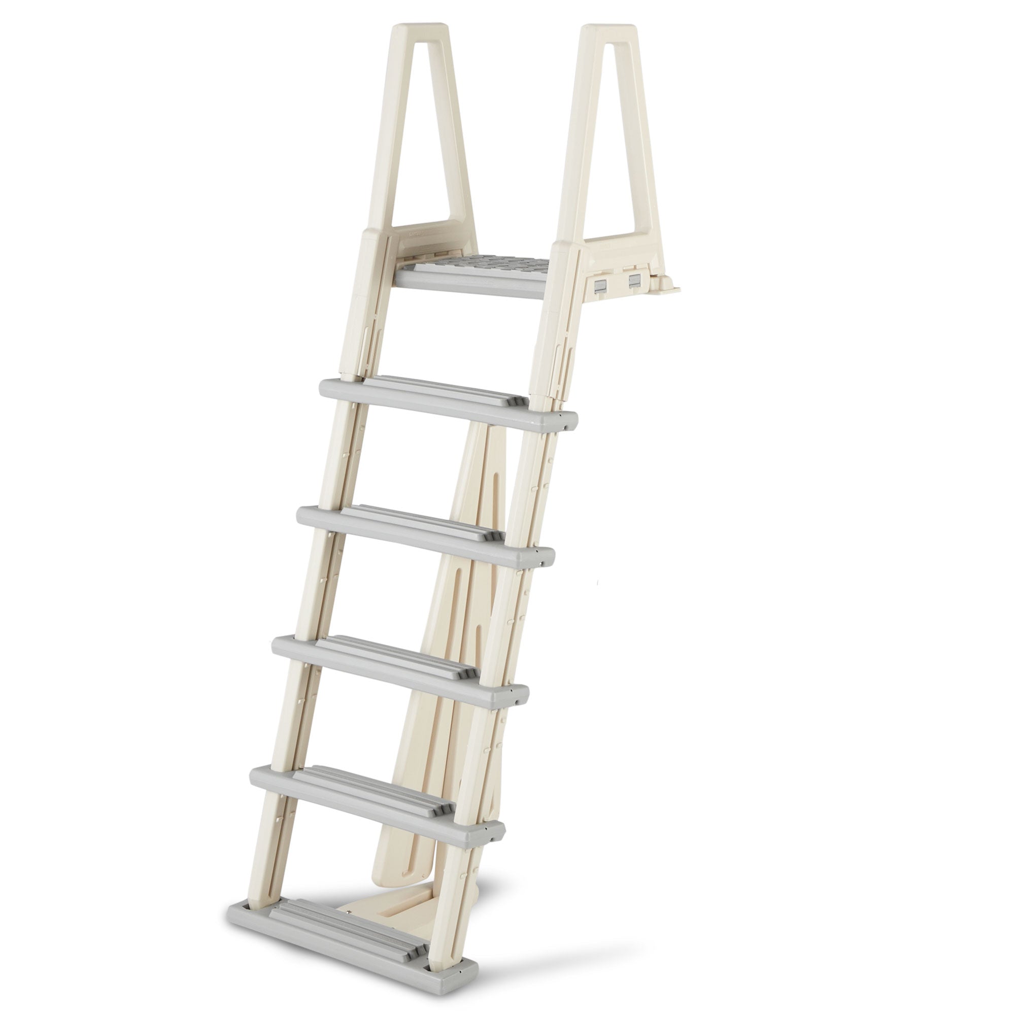With an adjustable height, this pool ladder is designed to fit 46-inch to 56-inch above-ground pools, all while supporting an impressive 300-pound weight capacity. Whether you're seeking to relax by the poolside or engage in active water fun, this ladder ensures that pool access is both convenient and secure. The heavy-duty frame design guarantees stability and long-lasting performance and the warm gray rails and gray treads provide maximum visibility. Designed with an anti-entrapment barrier, you and your family have enhanced safety while swimming. Featuring 18-inch wide by 5-inch long stairs with treads, the pool ladder is user-friendly and makes pool entry and exit effortless for swimmers of all ages.