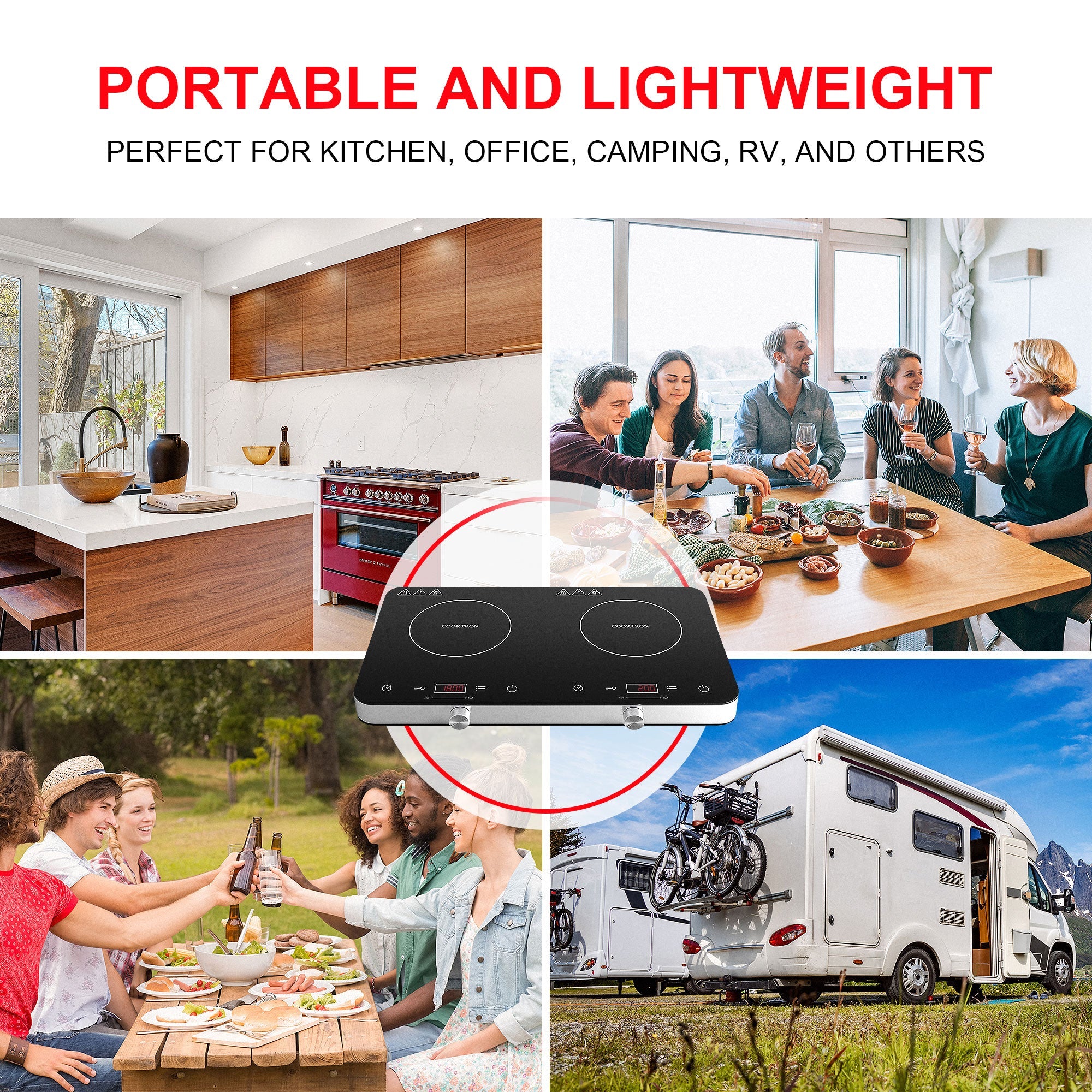 COOKTRON 1800W 120V Portable Double Burner Electric Induction Cooktop w/Knobs