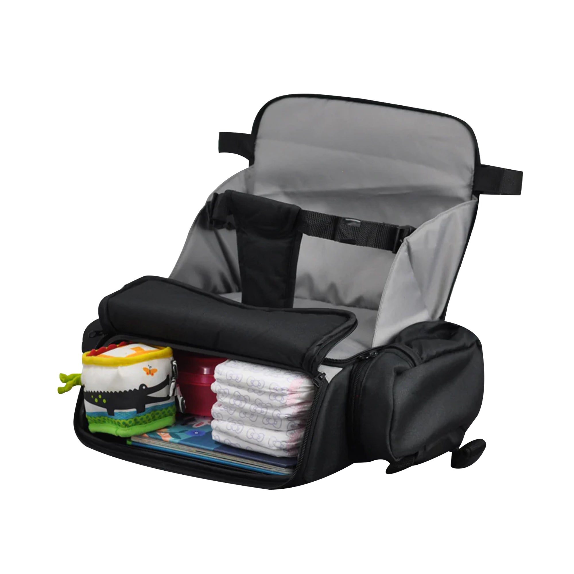 • This isn't just a backpack to store your items, the bag can be turned into a portable travel booster seat for extra security for your baby on high chairs