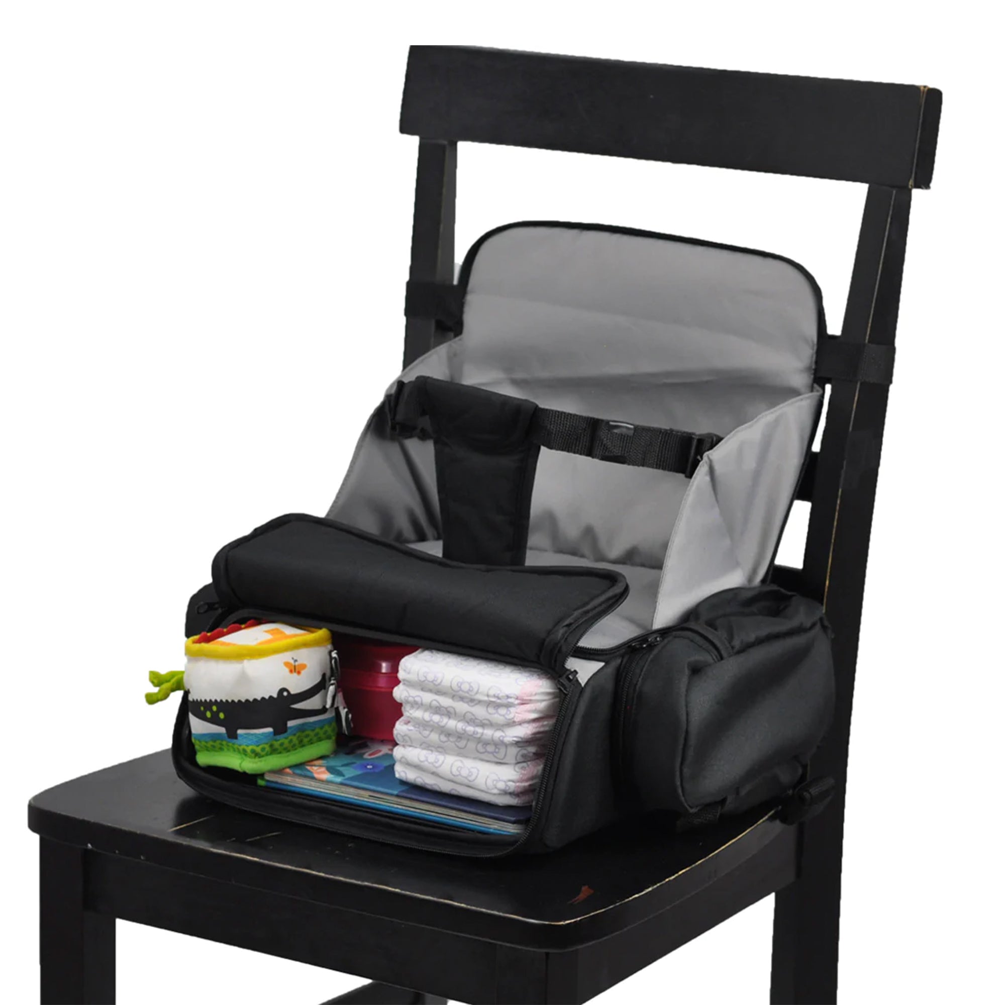 Cozy Cover 3 in 1 Portable Baby Booster Seat Diaper Backpack Bag, Black & Gray