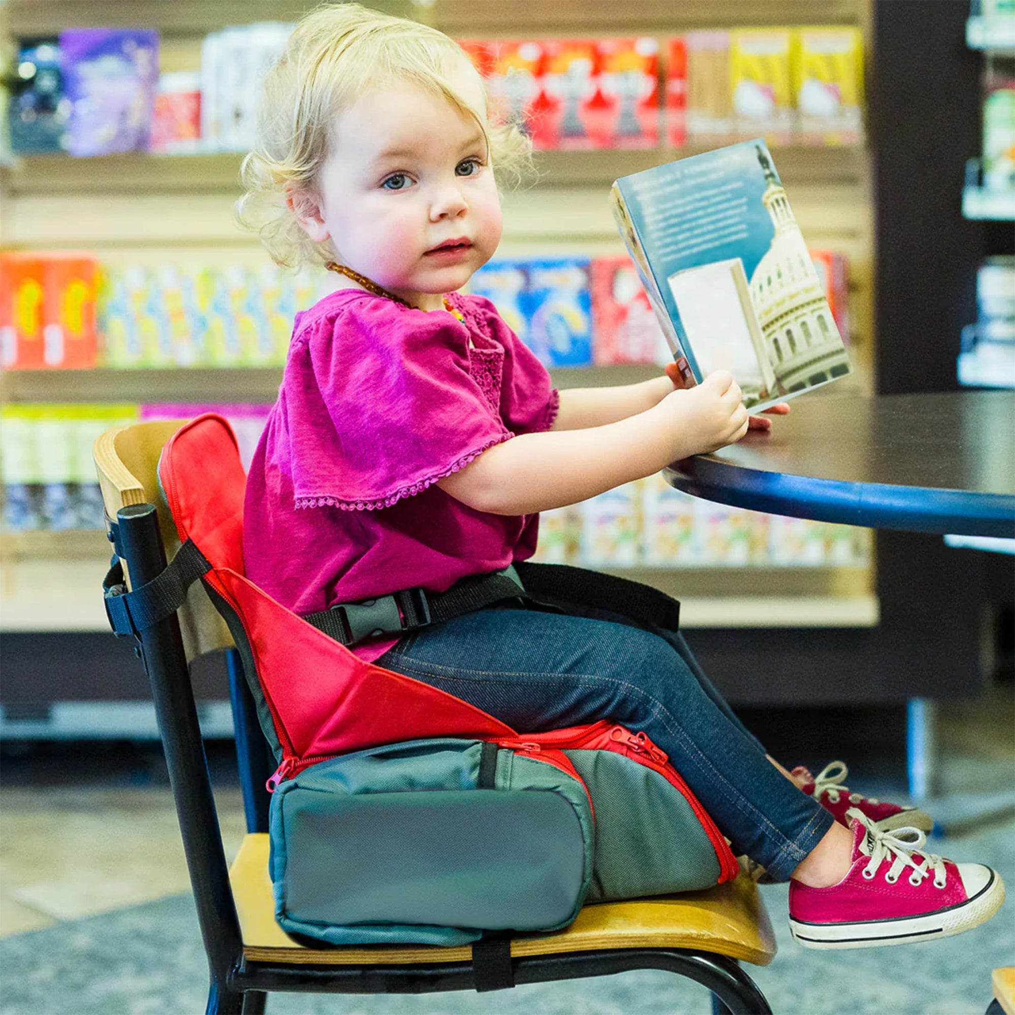 Cozy Cover 3 in 1 Portable Baby Booster Seat Diaper Backpack Bag, Red & Gray