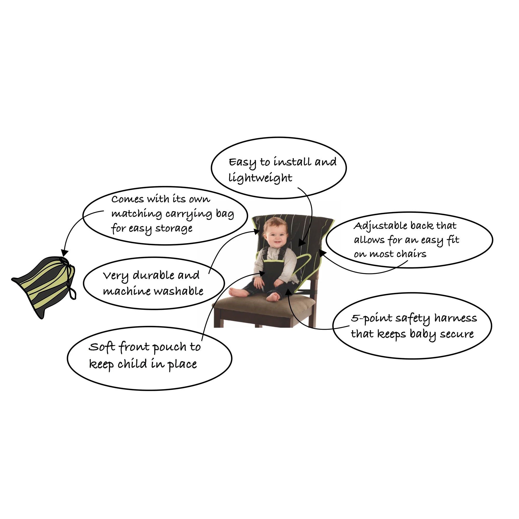 - Portable and lightweight high chair solution for traveling, eating out, and visiting grandparents