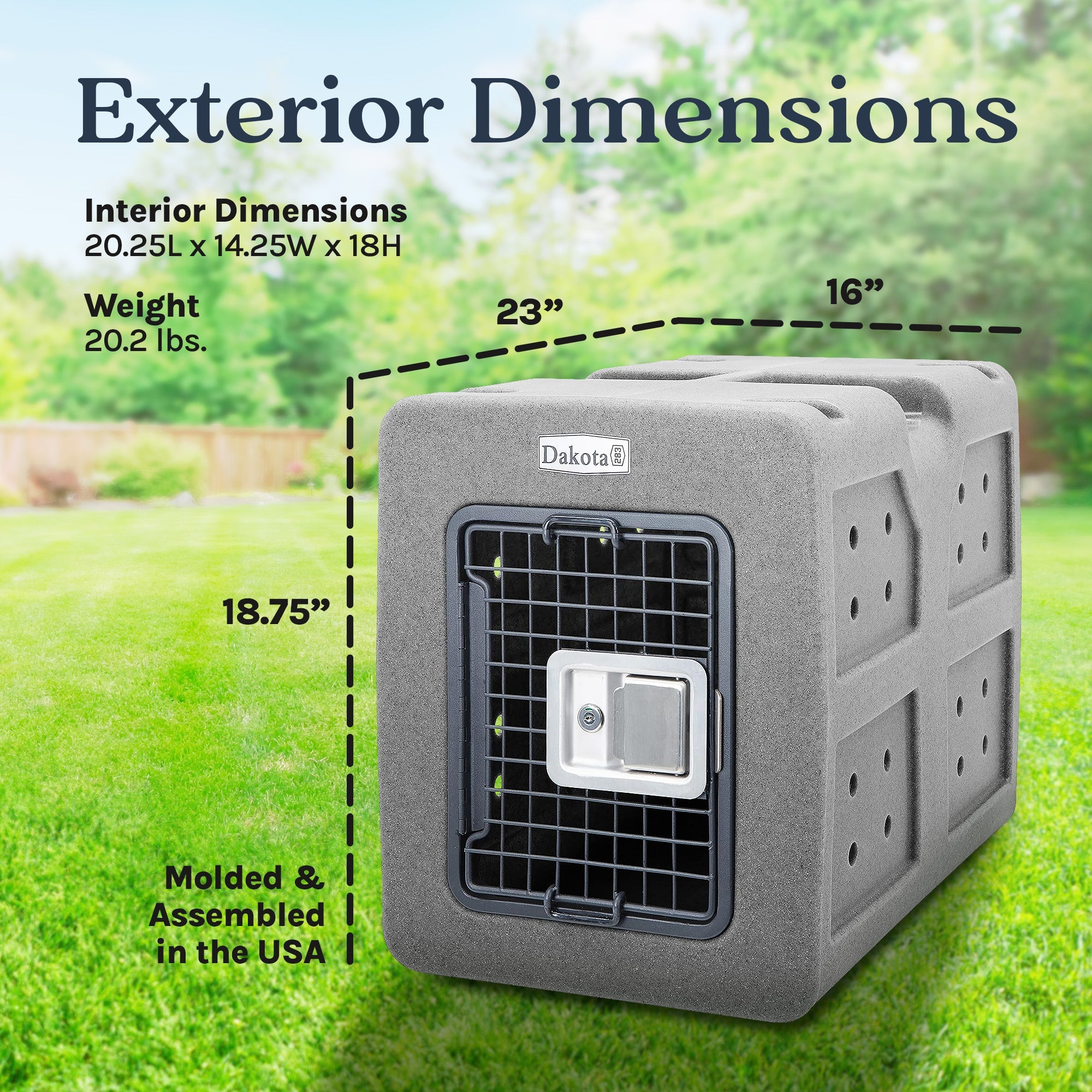Crafted with small-breed dogs in mind, this shelter offers an ideal secure space for your loyal furry friend. The pet crate measures 20.25 inches long, 14.25 inches wide, and 18 inches tall inside, great for Beagles to Brittany Spaniels. With an ultra-secure lock and keyed paddle-latching door, you can set off on your adventures with peace of mind and a sense of security. Designed with an easy-grip handle, this animal crate ensures effortless access and transport for your pet in a compact and convenient design.
