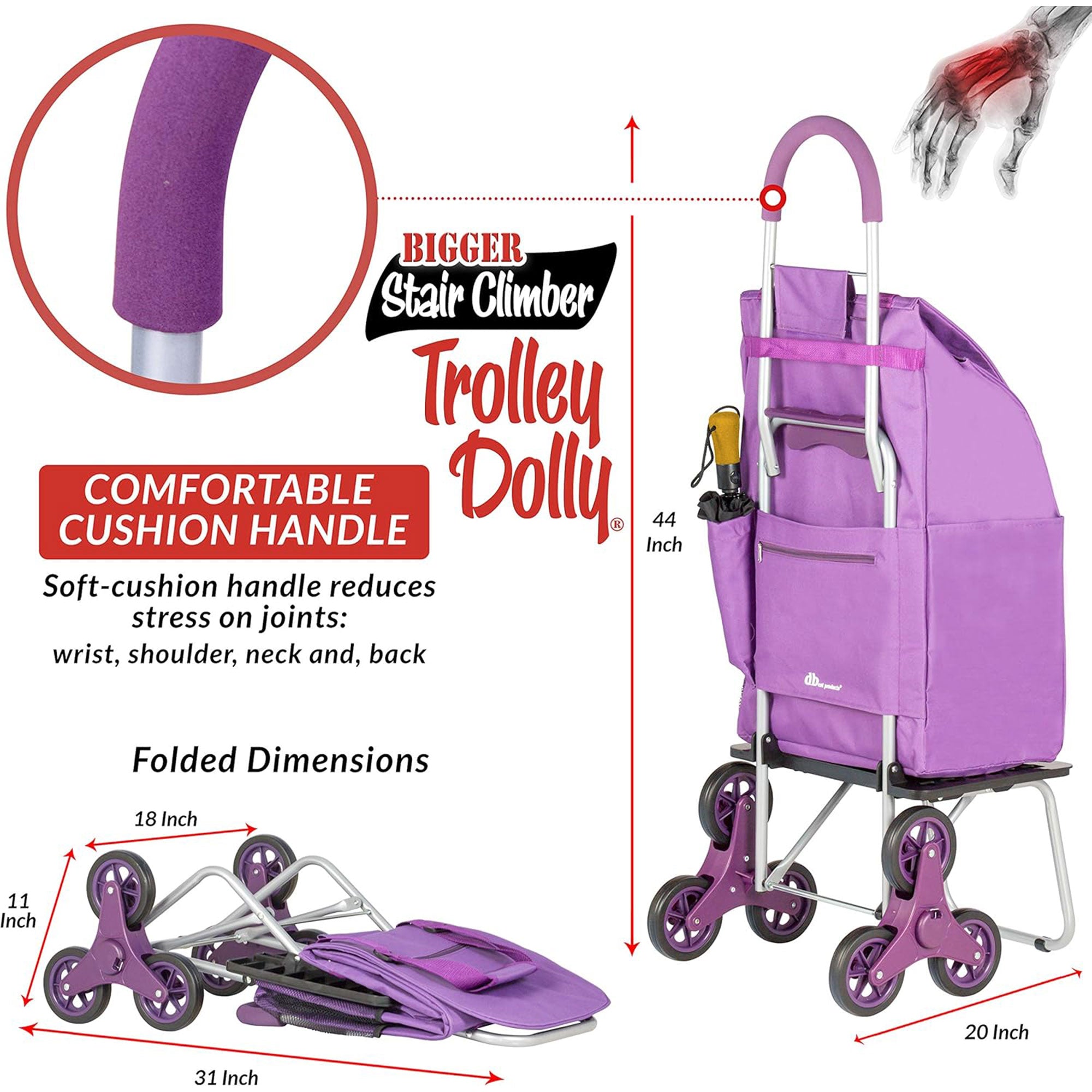 dbest products Stair Climber Bigger Trolley 6 Wheel Foldable Cart Dolly, Purple