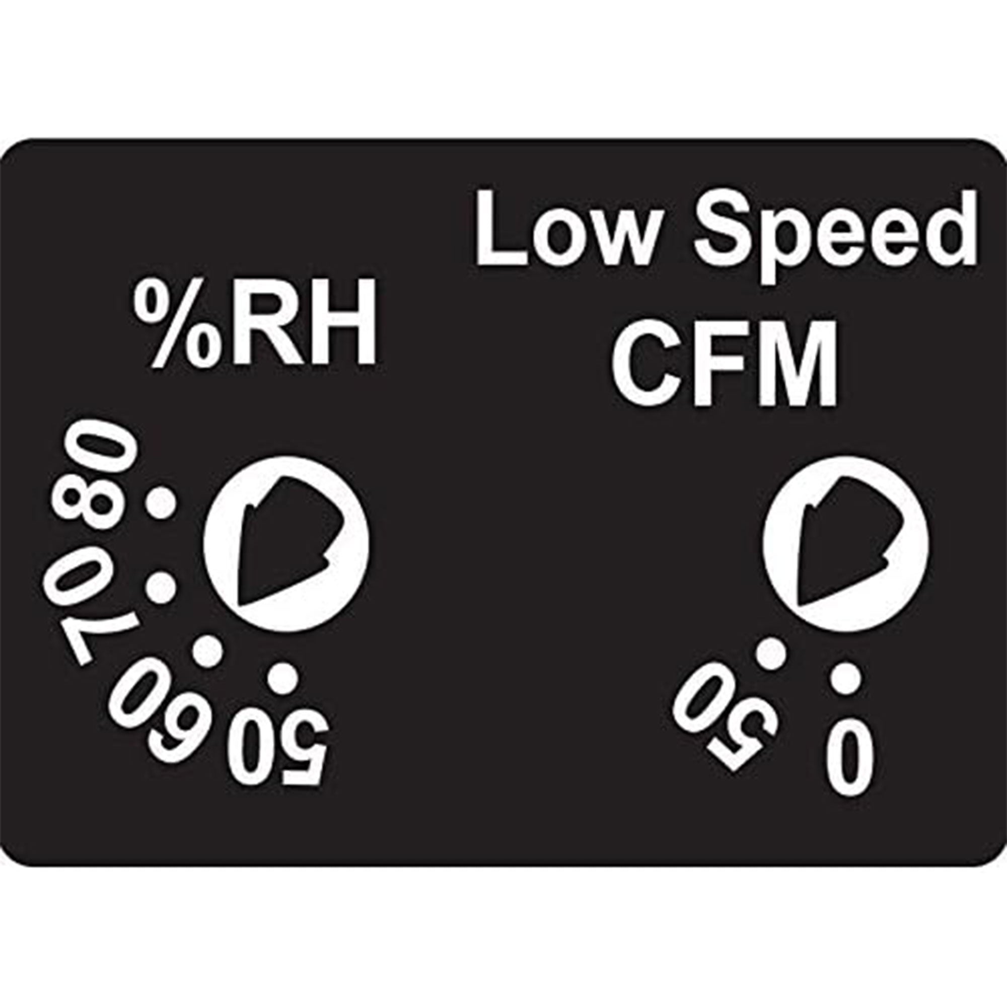 - Humidity sensor has adjustable relative humidity set-point and triggers full speed operation until moisture is adequately removed