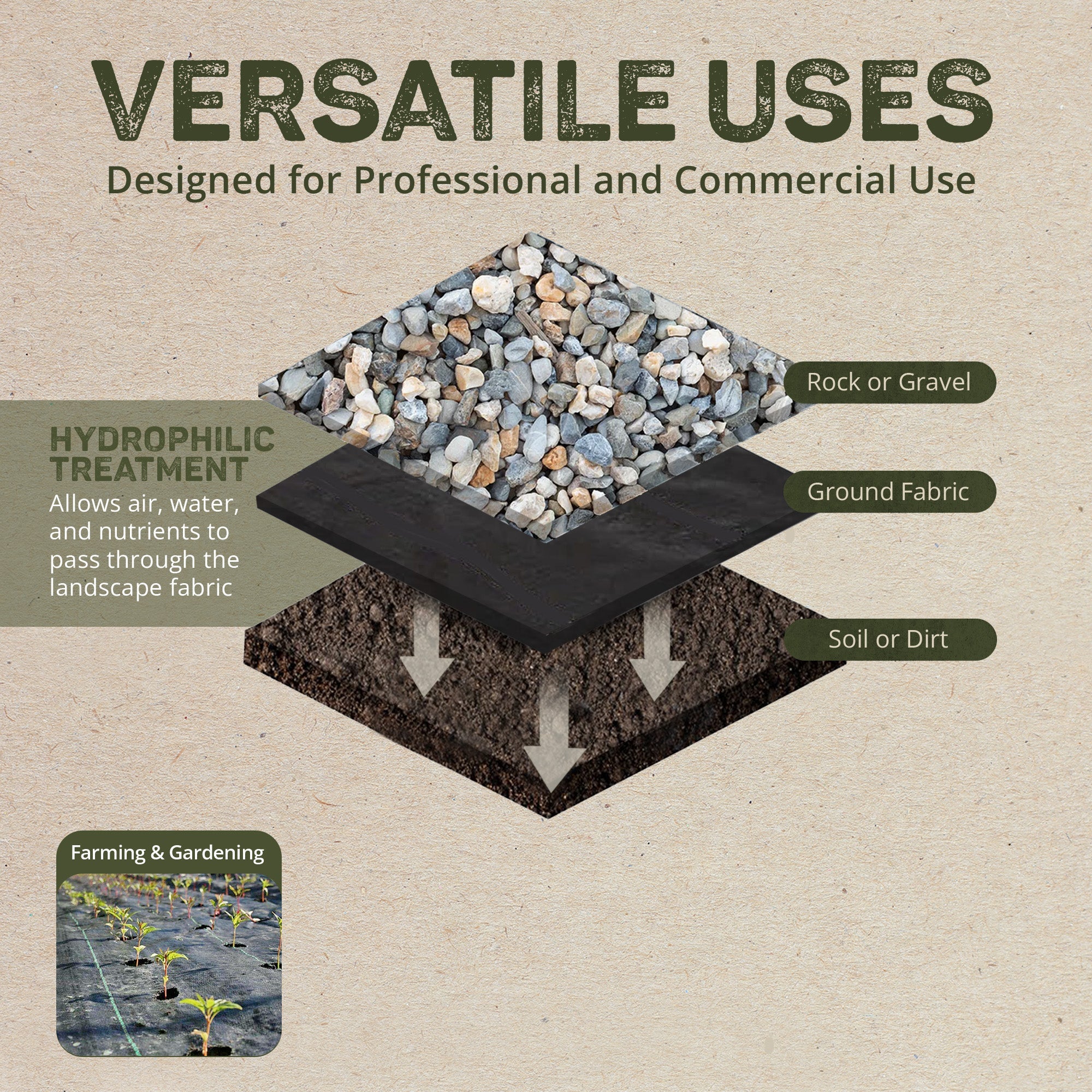 Keep your plants healthy and well-maintained with the DeWitt Barrier Pro. Designed for professional landscapers, contractors, and garden centers, this high-quality fabric helps protect your garden while promoting plant growth. The fabric allows water, air, and nutrients to pass through while serving as a reliable ground cover. To enhance its appearance, simply cover it with bark, mulch, or decorative stone. This garden fabric comes in a brown color and measures 4 x 300 feet.