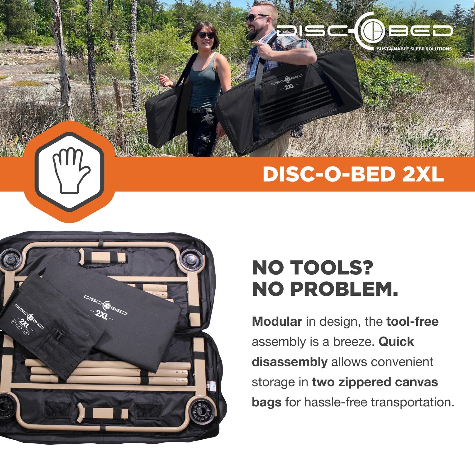 Disc-O-Bed 2XL Cam-O-Bunk Benchable Double Cot w/Organizers, Black