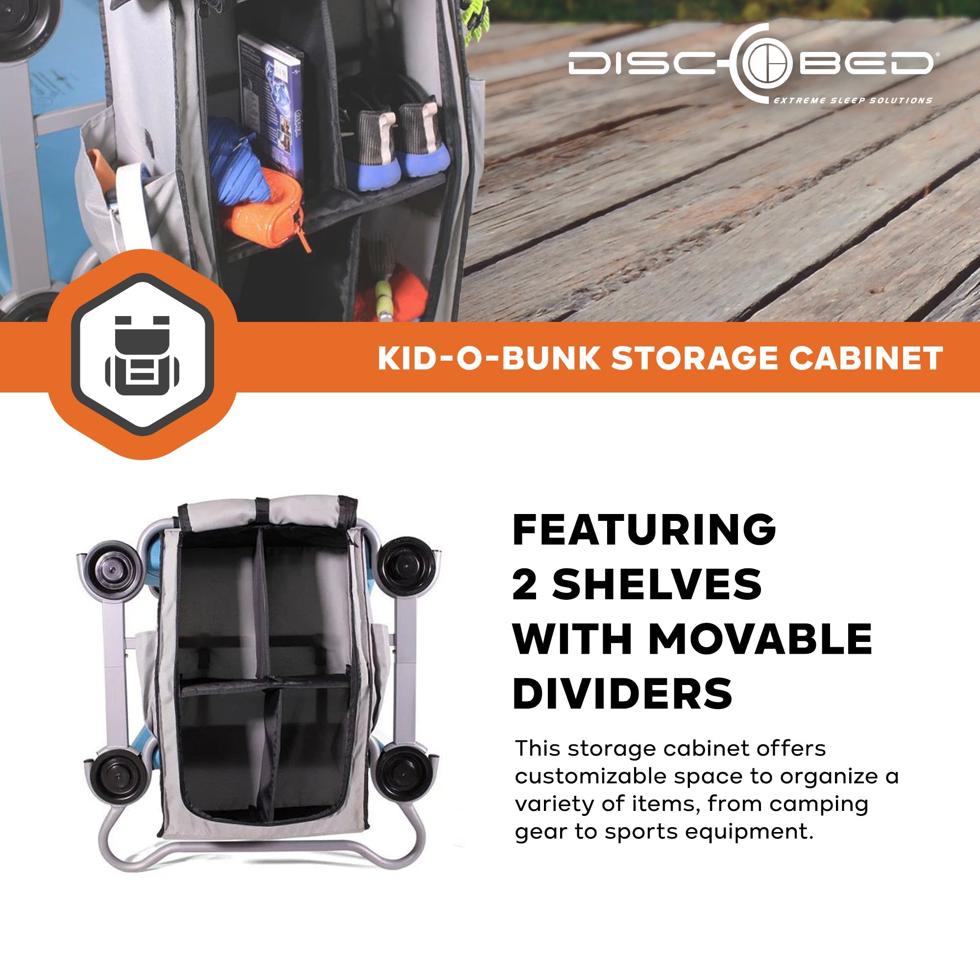 Disc-O-Bed Kid-O-Bunk Camping Cots Folding Storage Cabinet for Travel, Grey
