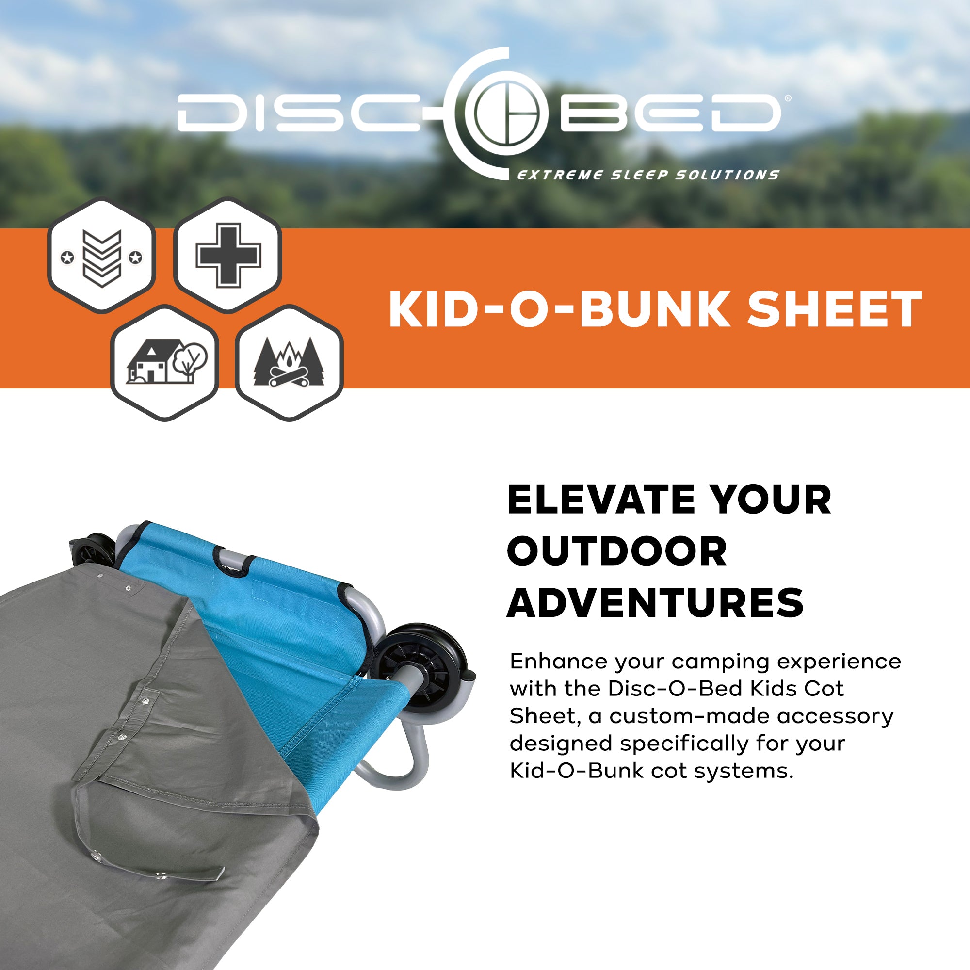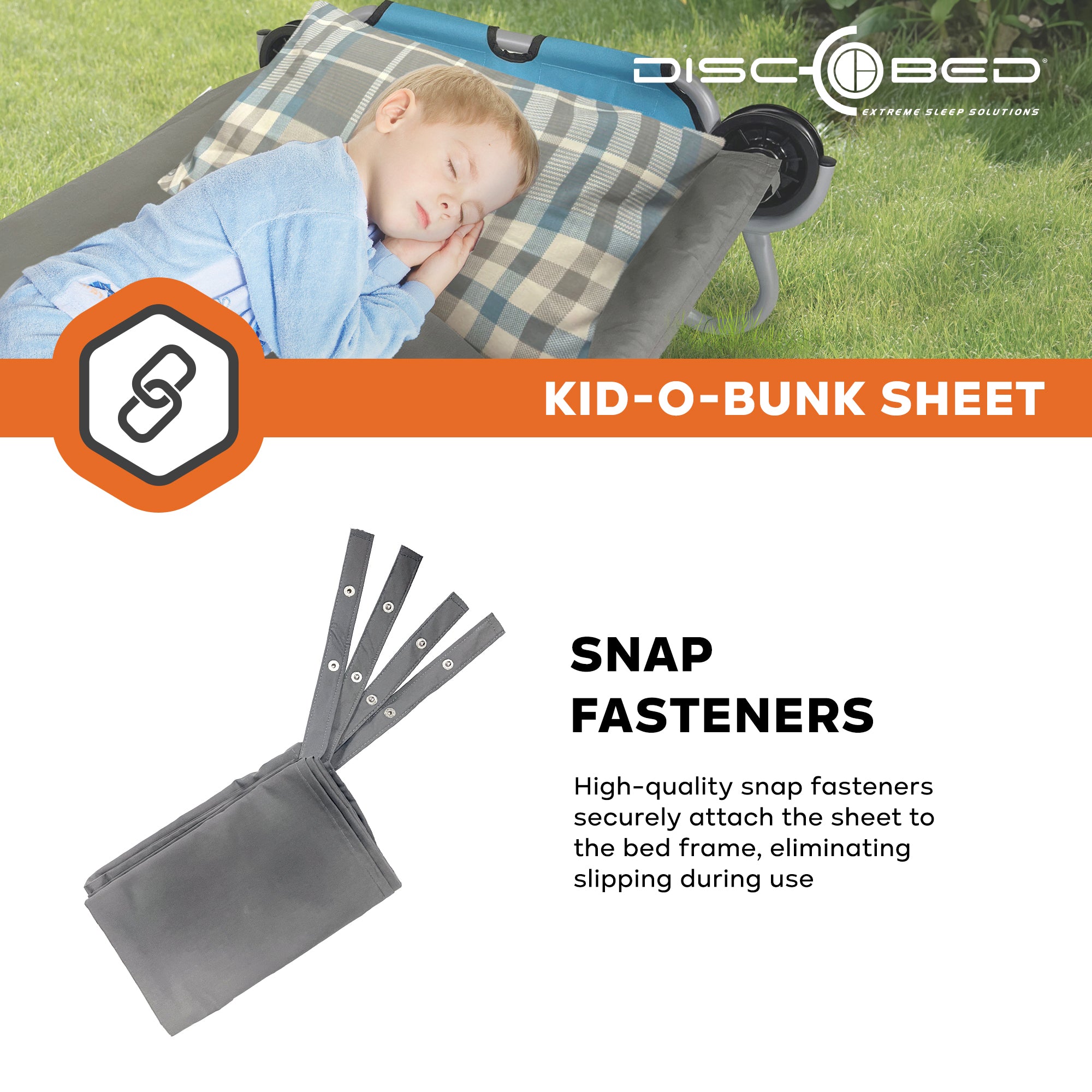 Enhance your camping experience with the Disc-O-Bed Kids Cot Sheet, a custom-made accessory designed specifically for your Kid-O-Bunk folding bed systems. Whether you're sleeping under the stars, at a campsite, or on an adventurous road trip, this kids’ sheet is crafted from a polyester-cotton blend. Its durable and soft material offers comfort and hygiene, ensuring you stay clean and cozy throughout the night. The sheet attaches securely to your bed frame with snap fasteners, preventing it from slipping or moving, even if you toss and turn in your sleep.