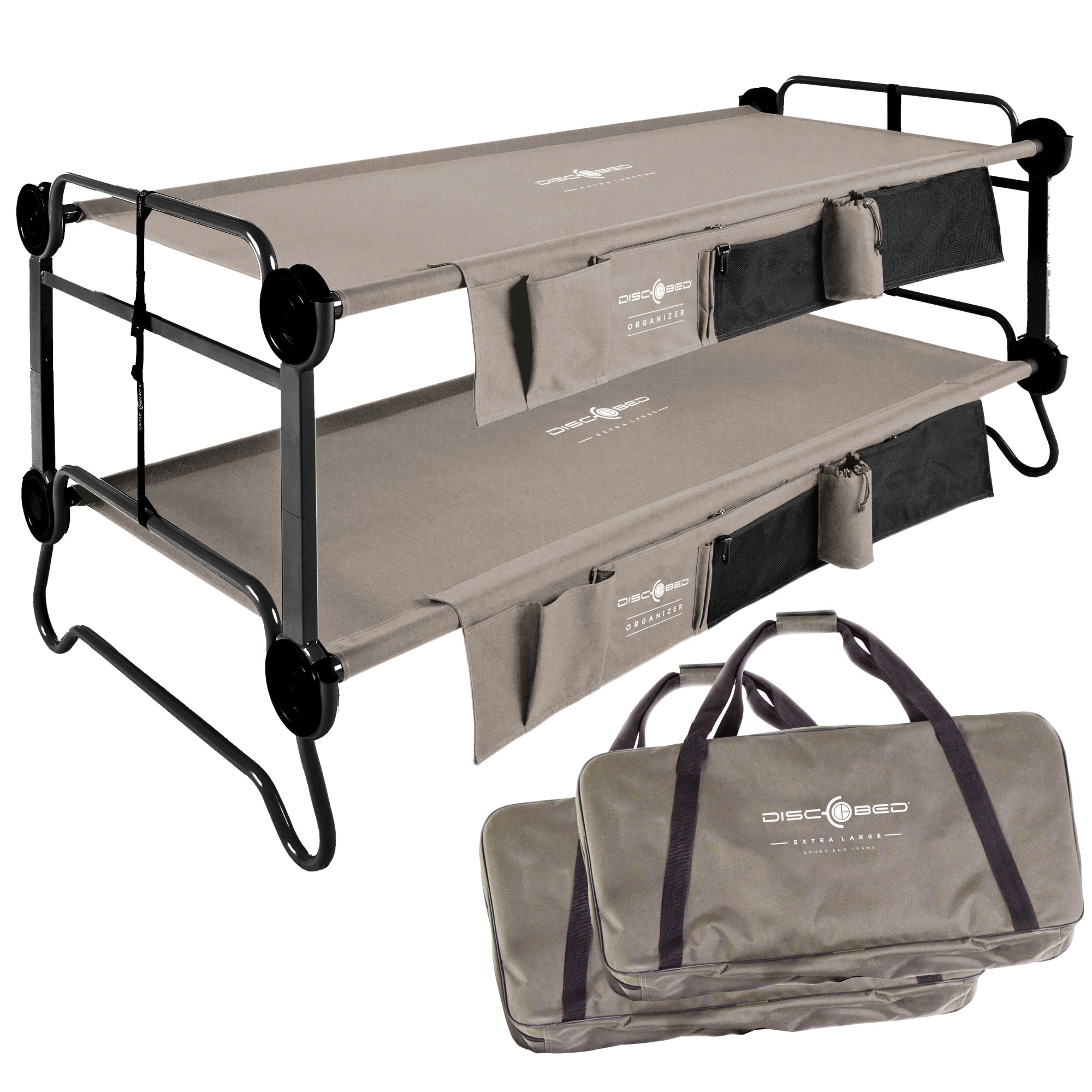 Disc-O-Bed X Large Cam-O-Bunk Benchable Double Cot with Storage Organizers, Tan