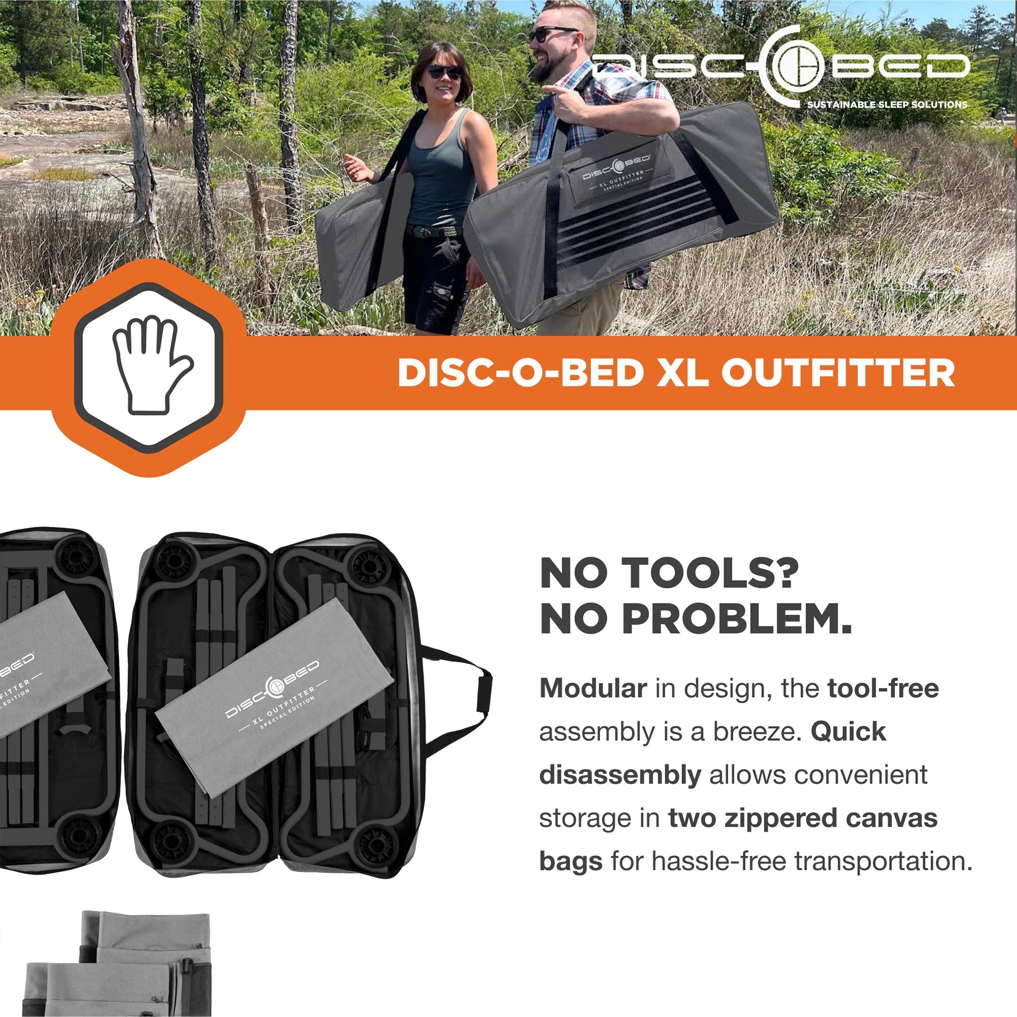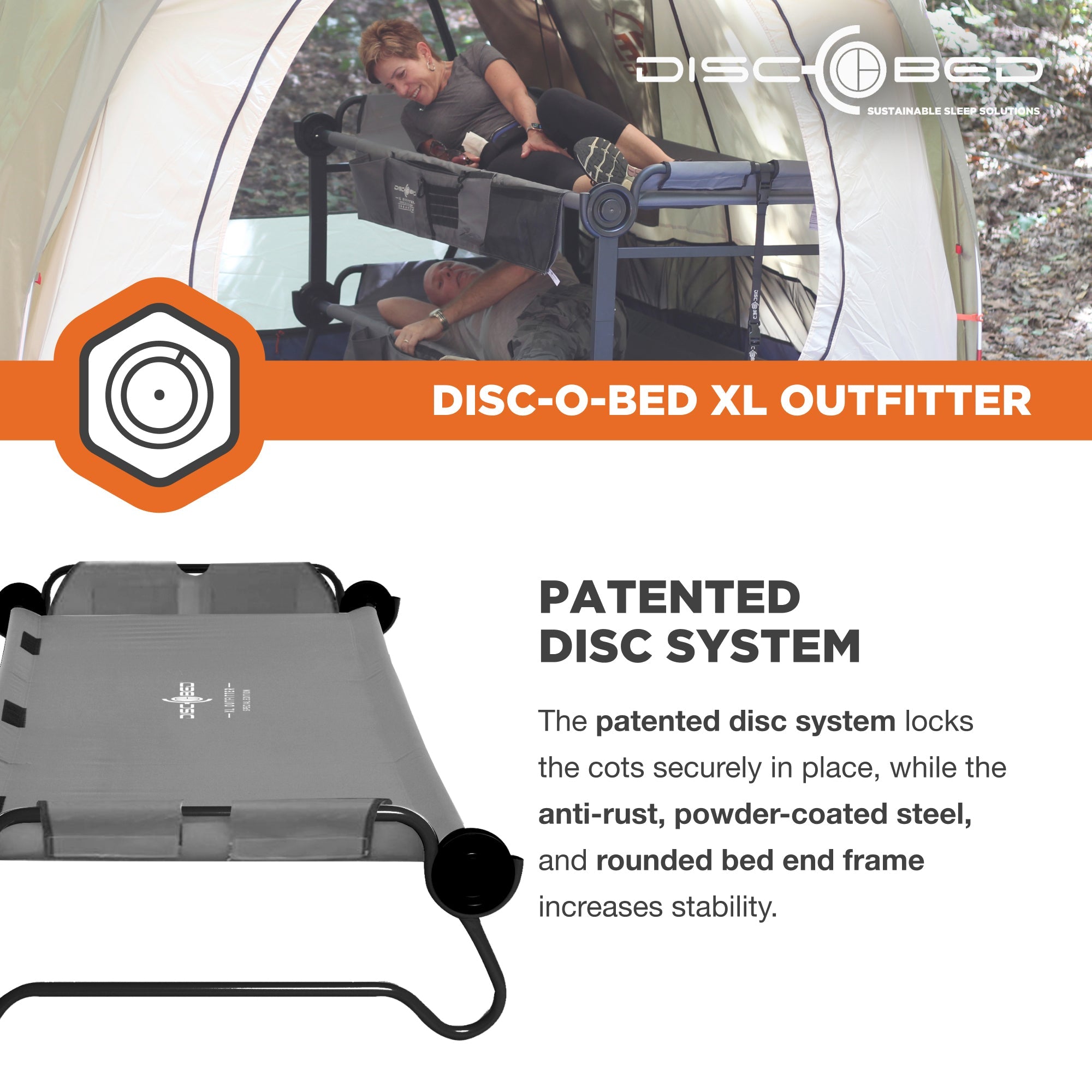 You'll love the space, comfort, and tool-free setup of the Large Cam-O-Bunk Double Cot from Disc-O-Bed.