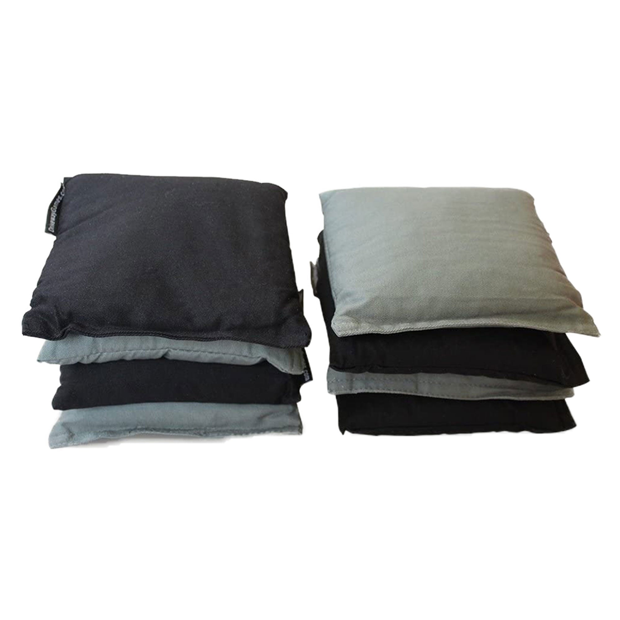 - Bean Bags: 4 black and 4 gray; Material: Canvas; Dimensions (L x W): 6 x 6 inches; Weight 14 ounces