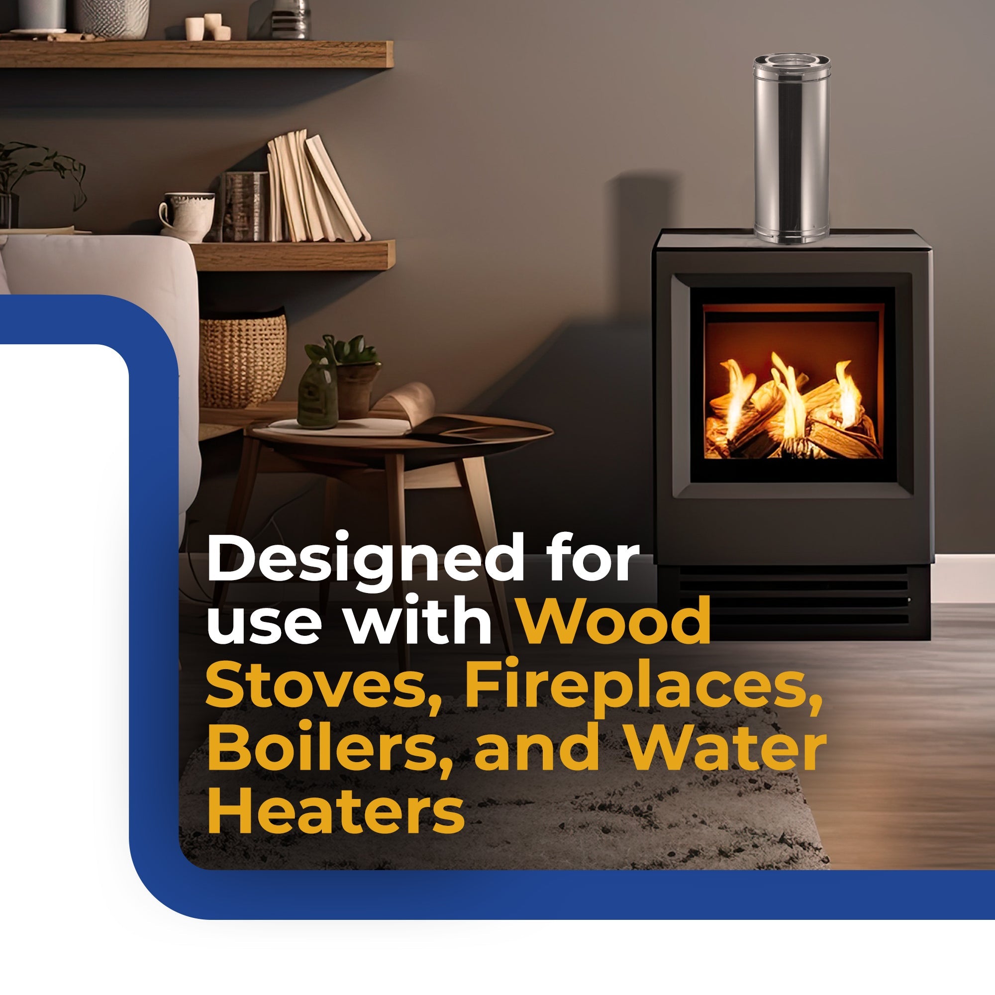 - Designed for use with wood stoves, fireplaces, boilers, and water heaters, this chimney pipe is compatible with appliances fueled by wood, oil, coal, or gas for versatile installations