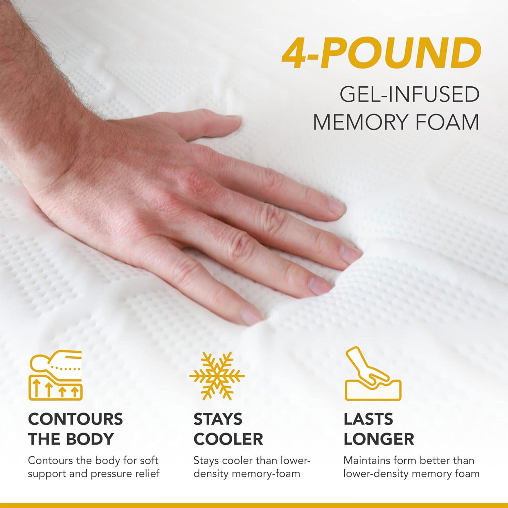 - High-density memory foam core with pressure-relieving gel naturally withstands a wide array of diseases and irritants