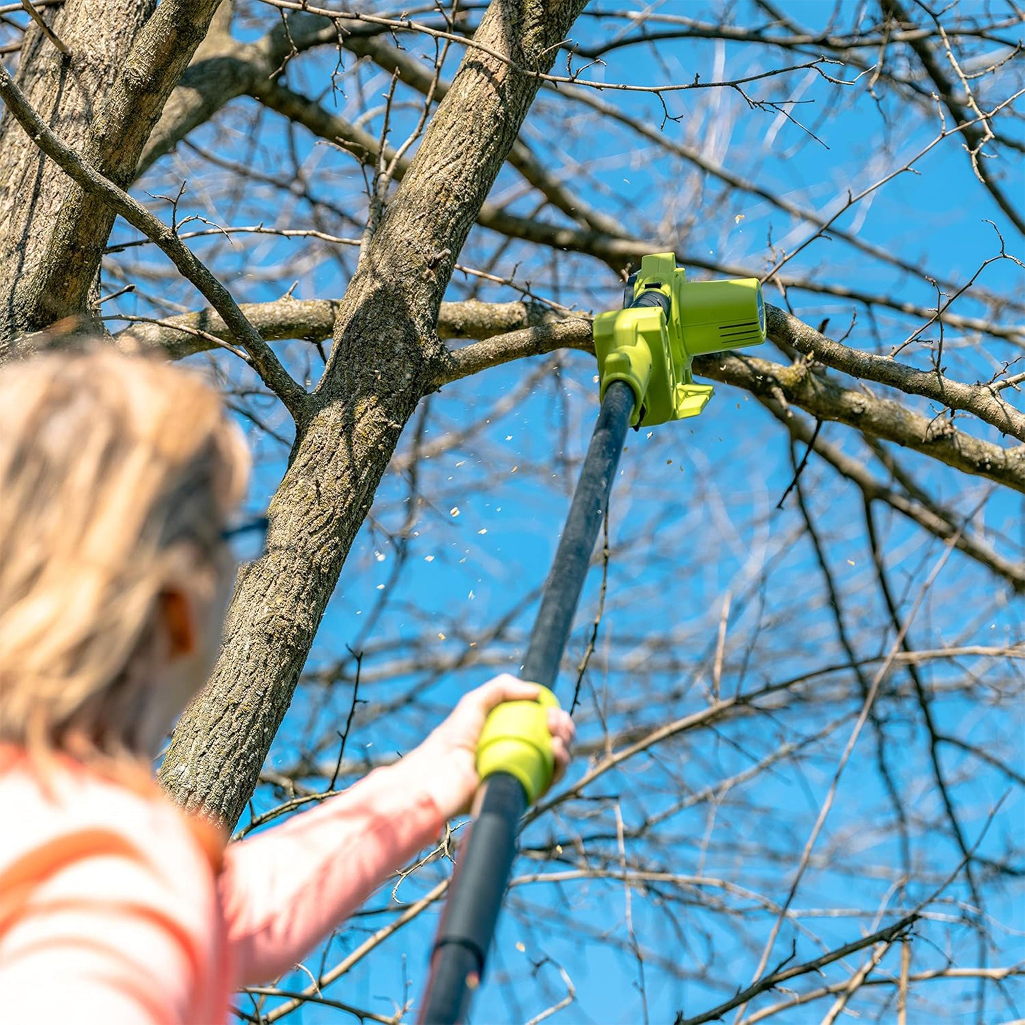 Experience effortless tree trimming with the Earthwise Power Tools 16 Inch 2-in-1 Cordless Mini Pole Chainsaw.