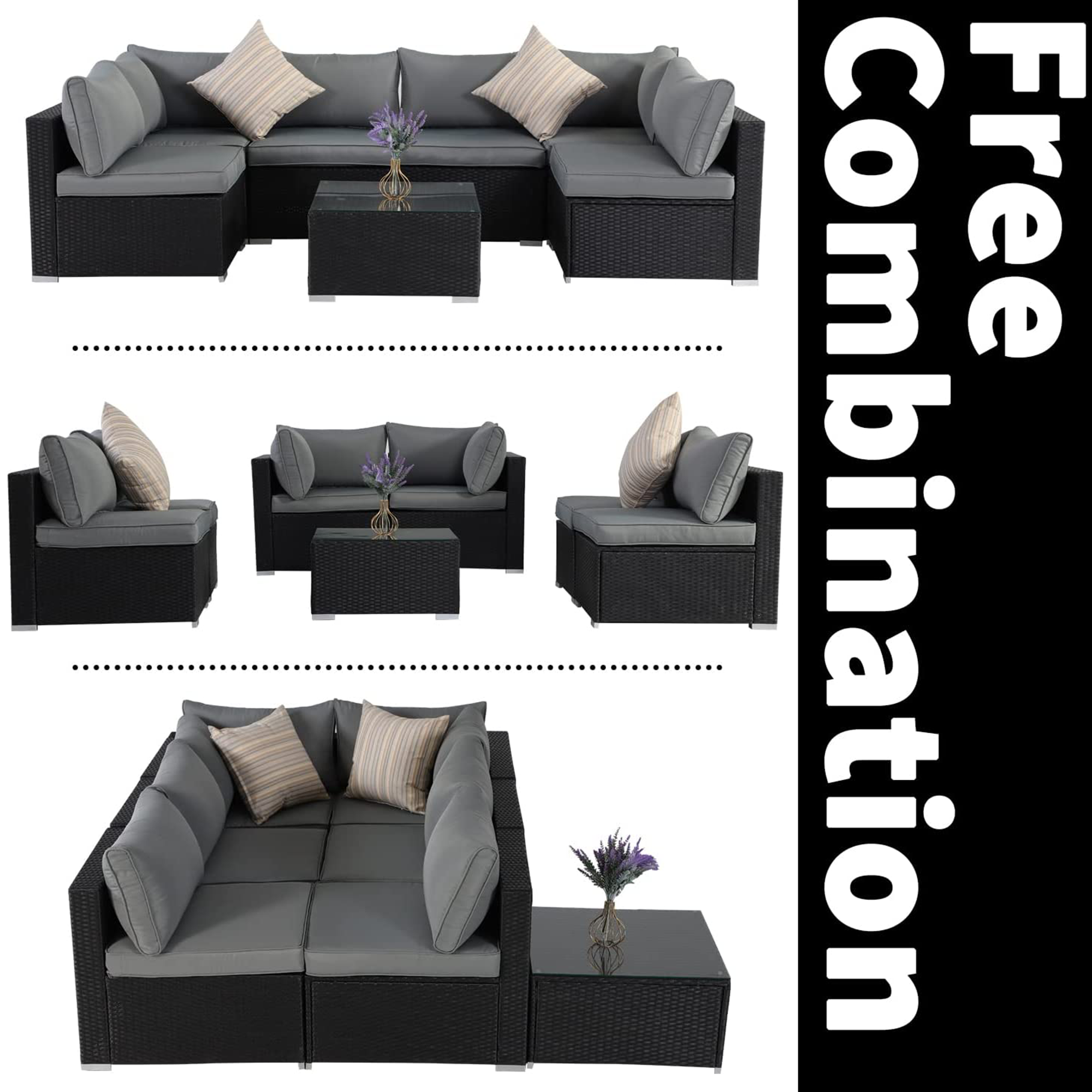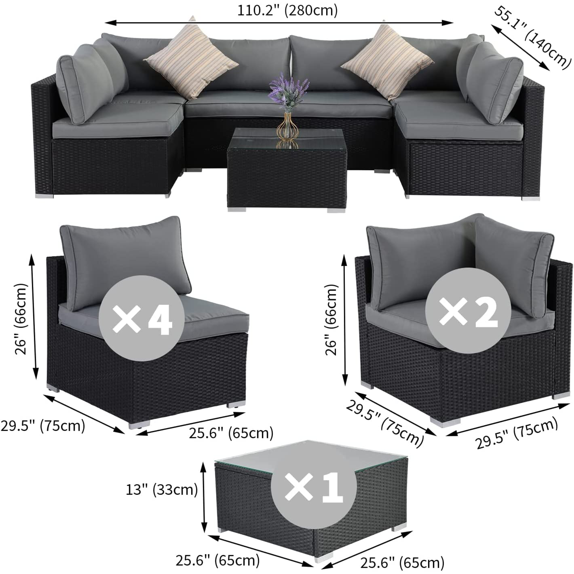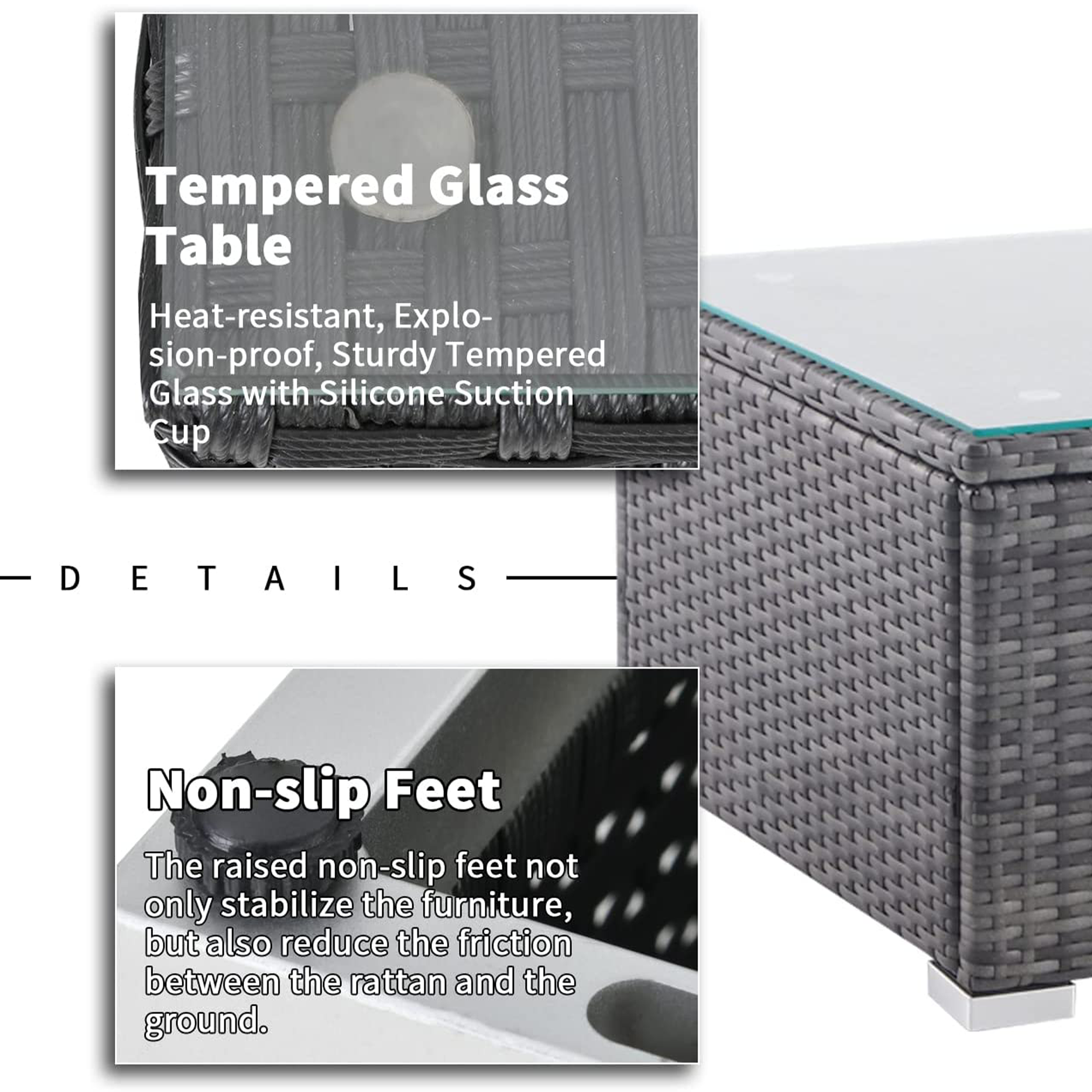 ESSENTIAL LOUNGER Outdoor Furniture Sofa Set w/Cushion & Glass Table, Set of 7