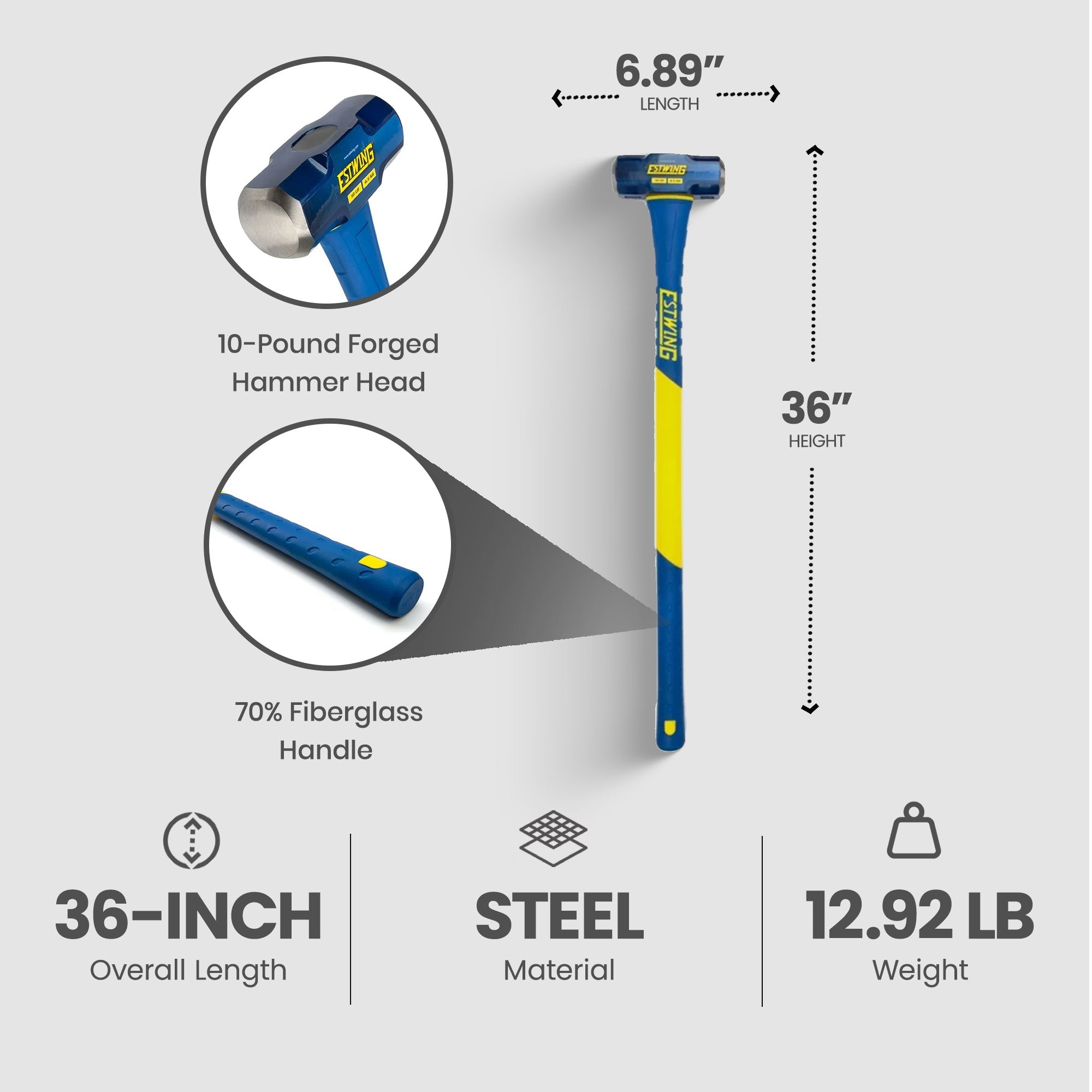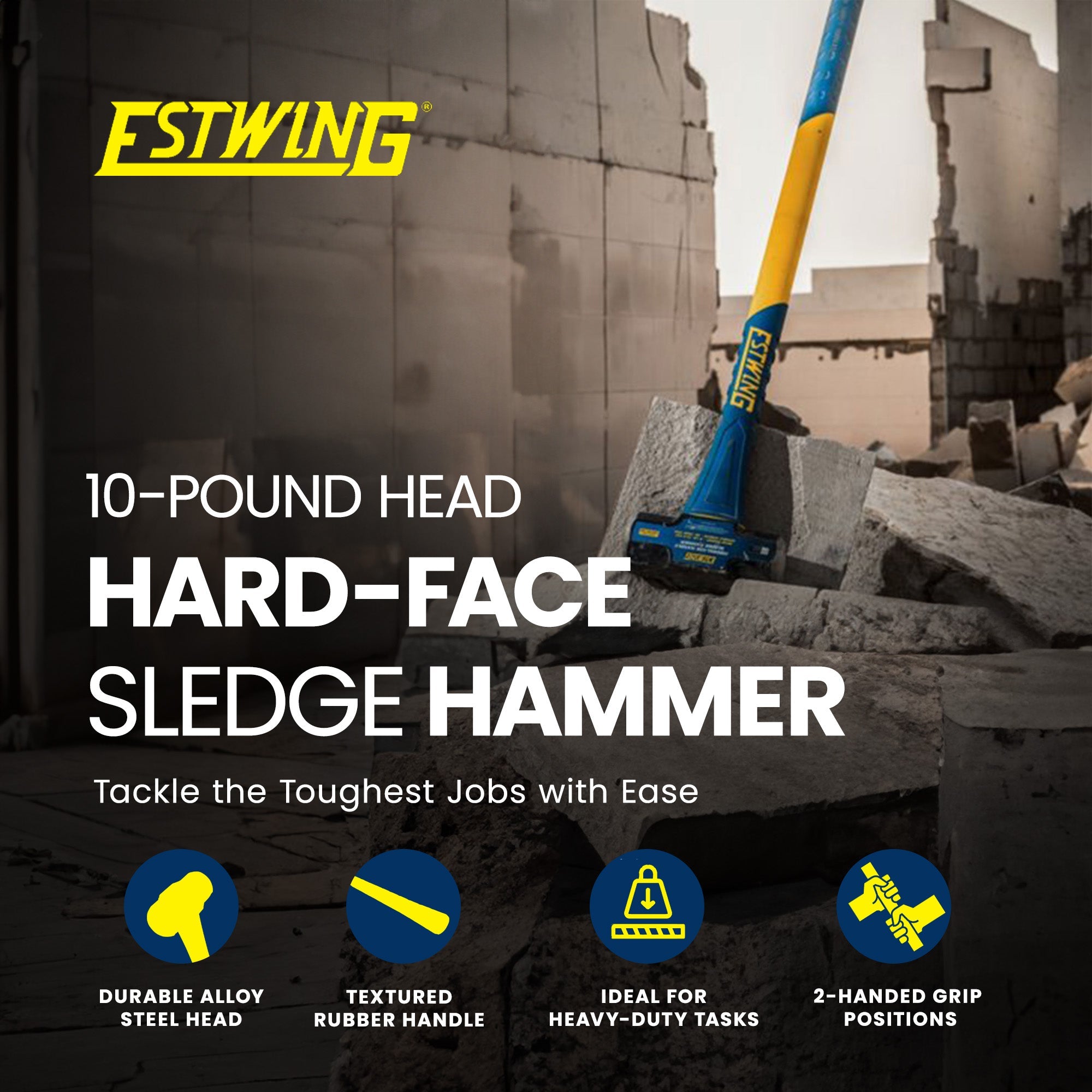 Tackle the toughest jobs with ease with the Estwing 10-Pound Head Hard-Face Sledge Hammer with 36-Inch Fiberglass Handle.