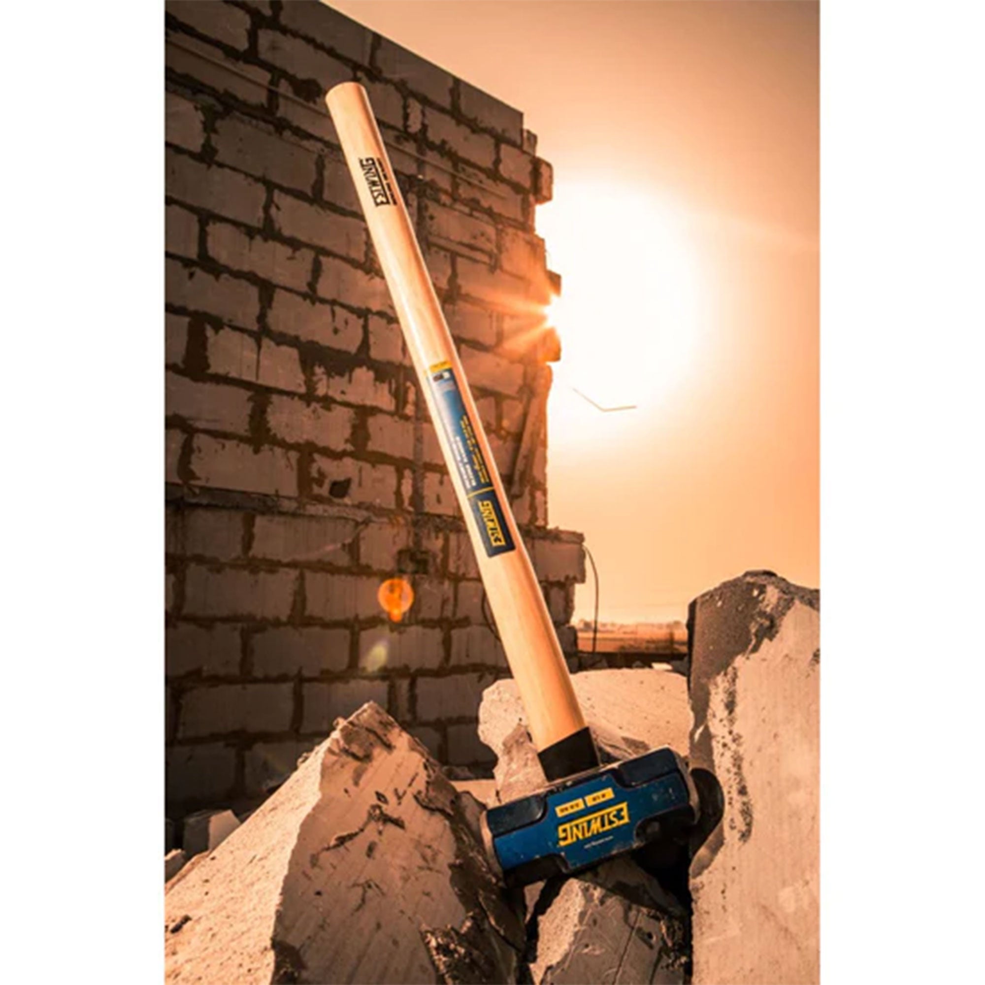 - Hard-face sledgehammer with dual injection handle infused with a sturdy 36-inch hickory handle for superior control during use