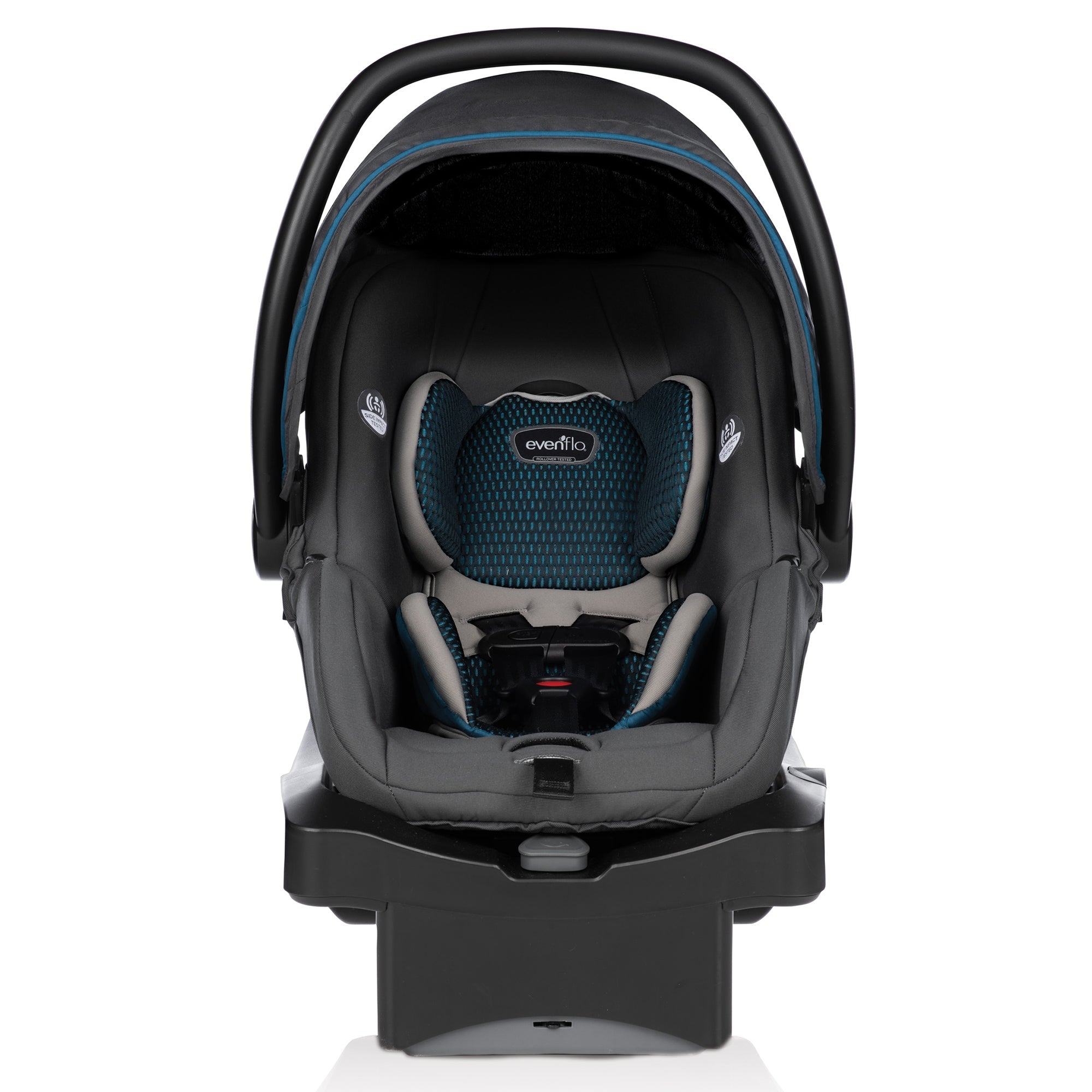 Say goodbye to your worries on the road with the LiteMax DLX Infant Car Seat with SafeZone Load Leg Technology from Evenflo.