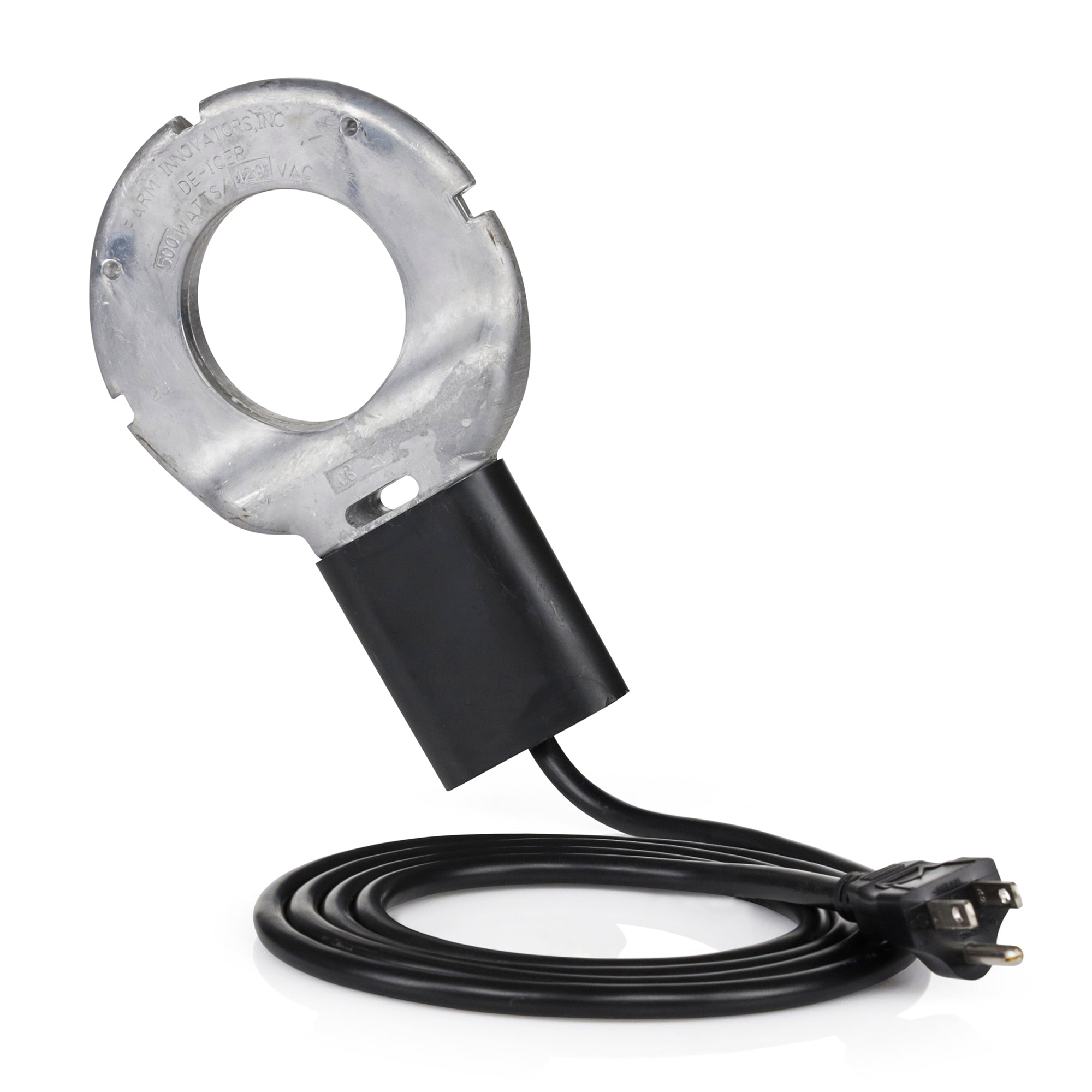 Constructed from cast aluminum, this de-icer provides ultimate safety and efficiency for busy farmers. The de-icer is thermostatically controlled to only operate when necessary to keep you and your livestock safe. For additional safety and convenience, the de-icer is safe to use in metal, rubber, or plastic containers. Powered at 500 Watts, this de-icer can operate efficiently in containers up to 50 gallons.