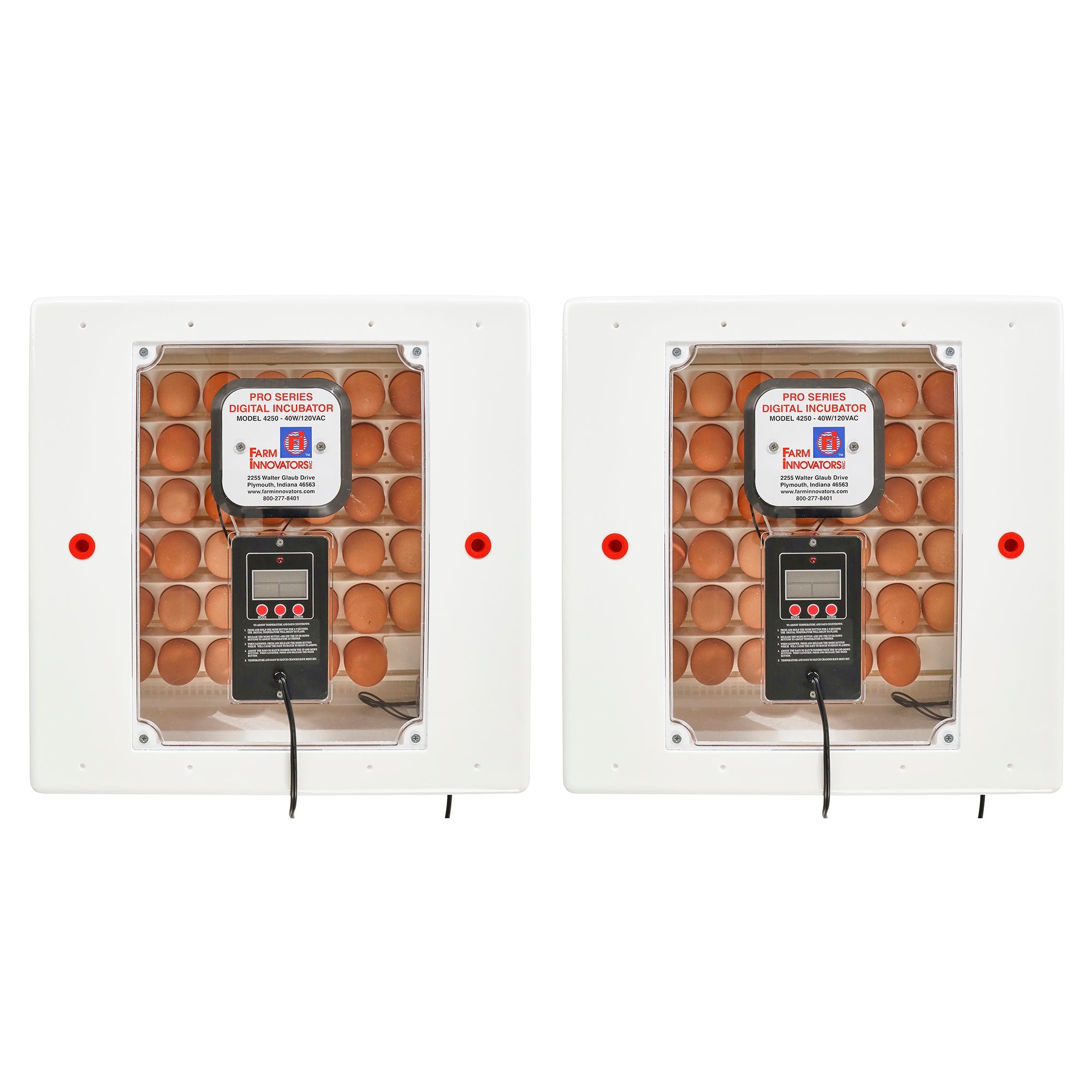 Make sure all your chicks reach the hatchling stage every time with the 2-pack of Farm Innovators Digital Circulated Air Incubators with Auto Egg Turner.