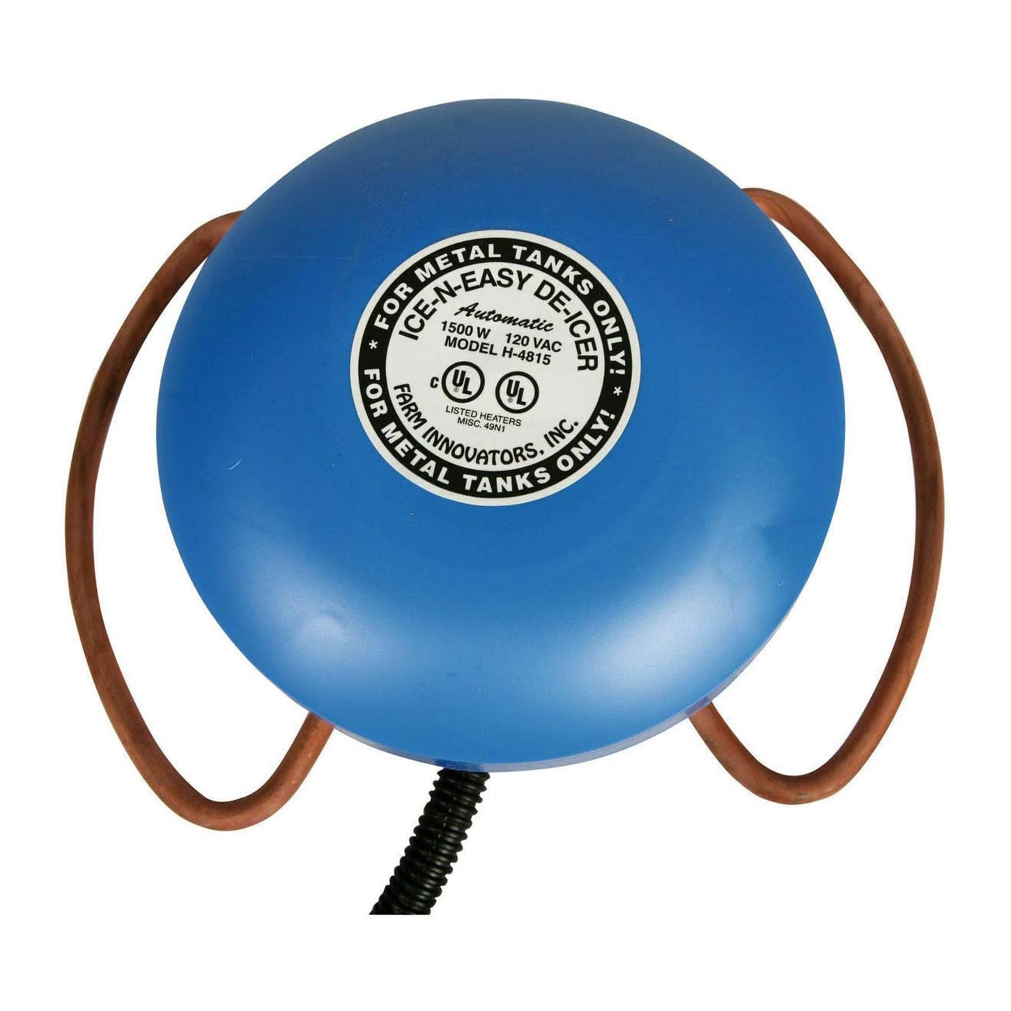 This water de-icer conveniently keeps your tank water from freezing, so your livestock can have fresh water during the winter months. The water trough deicer has a 1,500-watt design that's thermostatically controlled, operating only when necessary. This means the heating element automatically engages when the water temperature nears freezing. No need to adjust any temperature setting, as the warmer does the work for you. Constructed with Ice-N-Easy - a sturdy metal exterior and a plastic float, you can count on this water trough heater to be durable and reliable season after season. Get added peace of mind with the protective cage that's suitable for use in metal tanks. Plus, the electric heater is easy to see and move for optimal positioning in the tank. Safe for use in metal tanks only, the outdoor de-icer can be used across the farm. You can use the metal de-icer for large stainless steel waterer buckets for chickens, or metal stock tanks for cattle or horses.