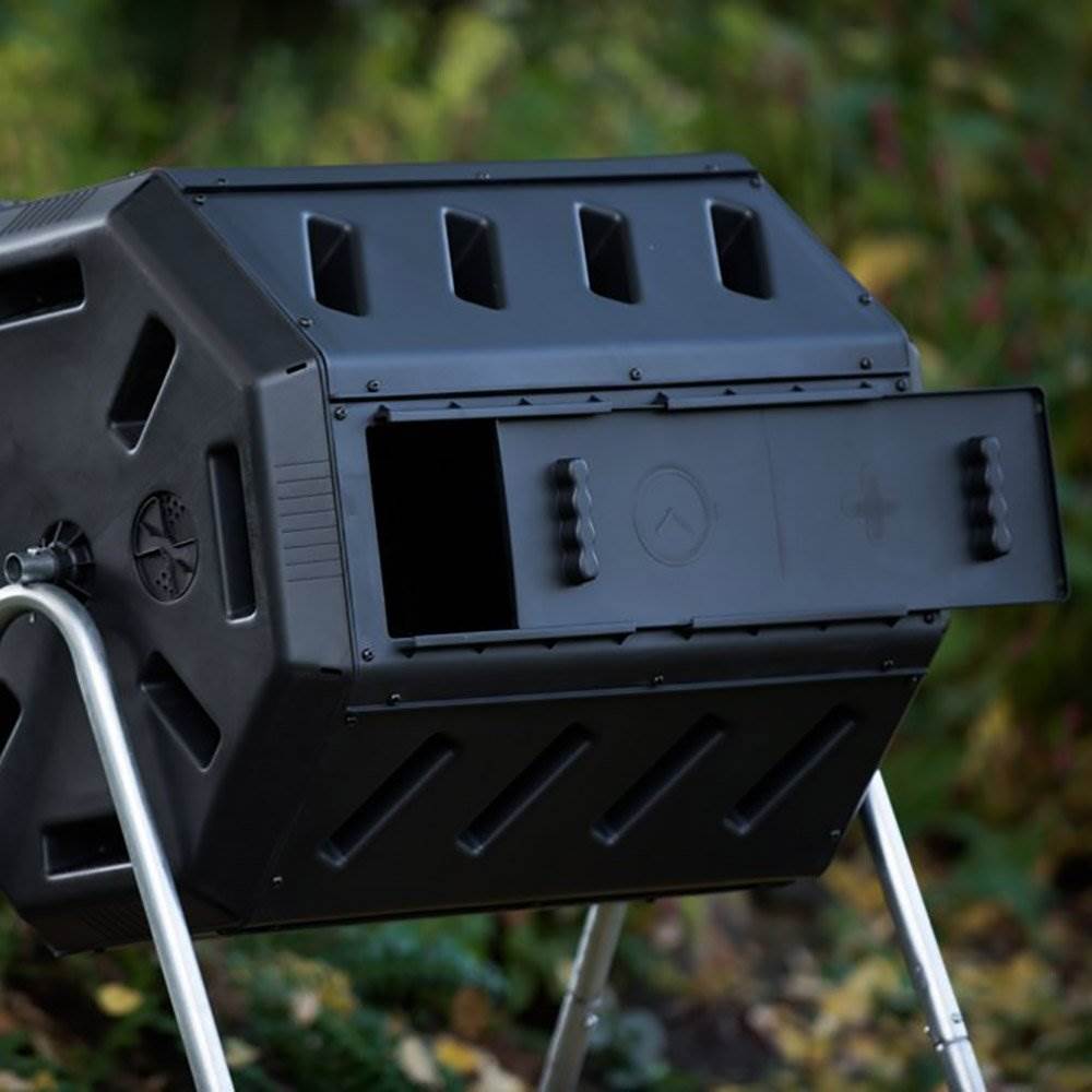 - Dual-chamber design allows for quick curing, turning your kitchen and yard waste into compost for your soil