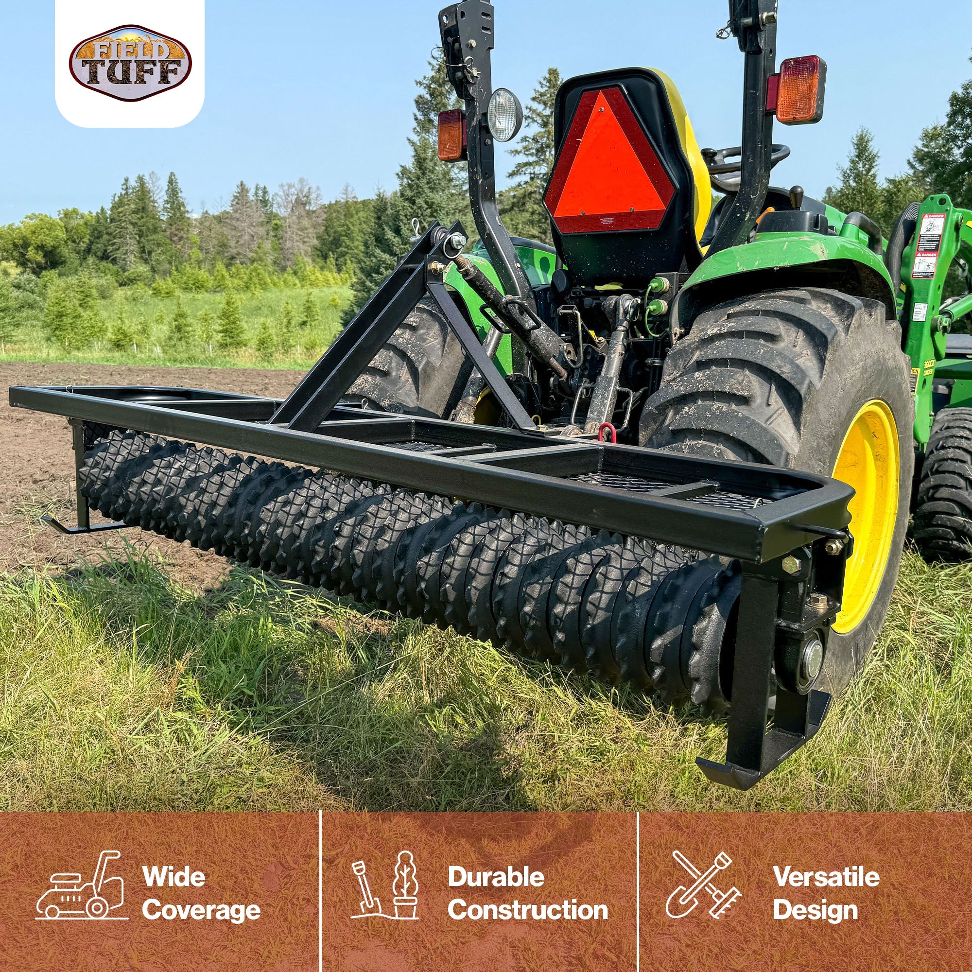 • 72-inch working width allows for efficient seedbed preparation, reducing the time needed to cover a large area