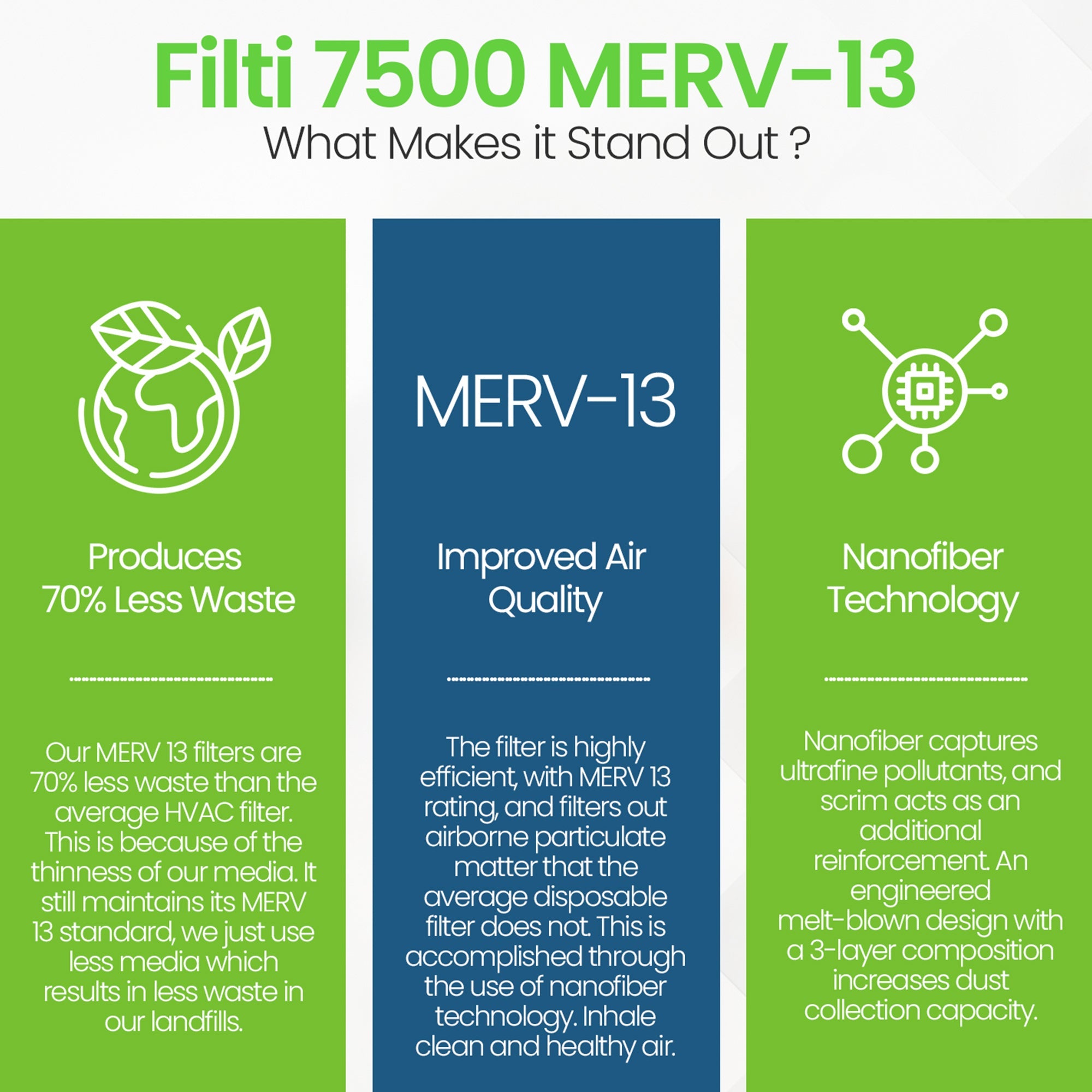 • Nanofiber technology captures ultrafine pollutants and offers additional reinforcement