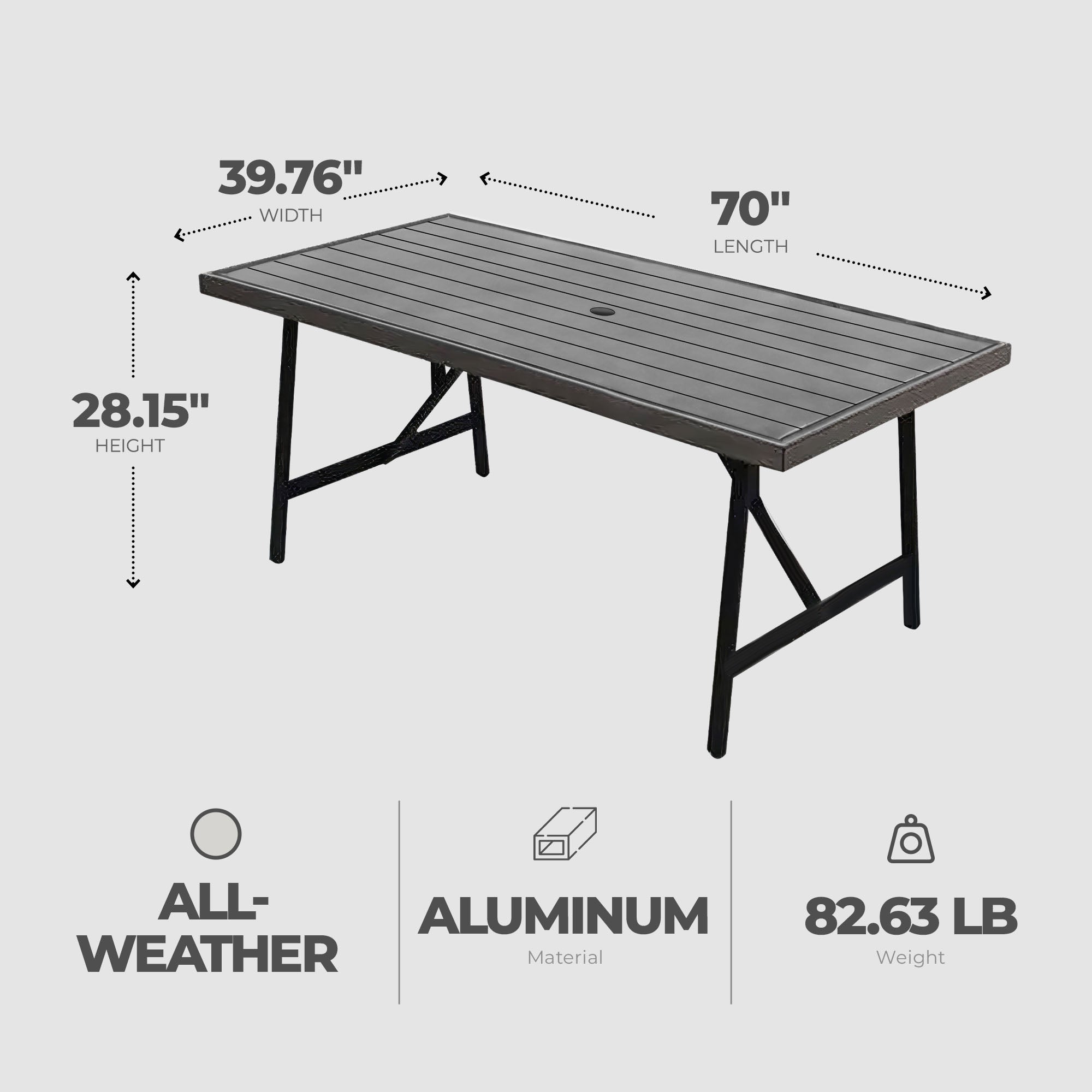 - Crafted with rust-resistant aluminum frames, this dining table ensures long-lasting durability, making it suitable for year-round outdoor use