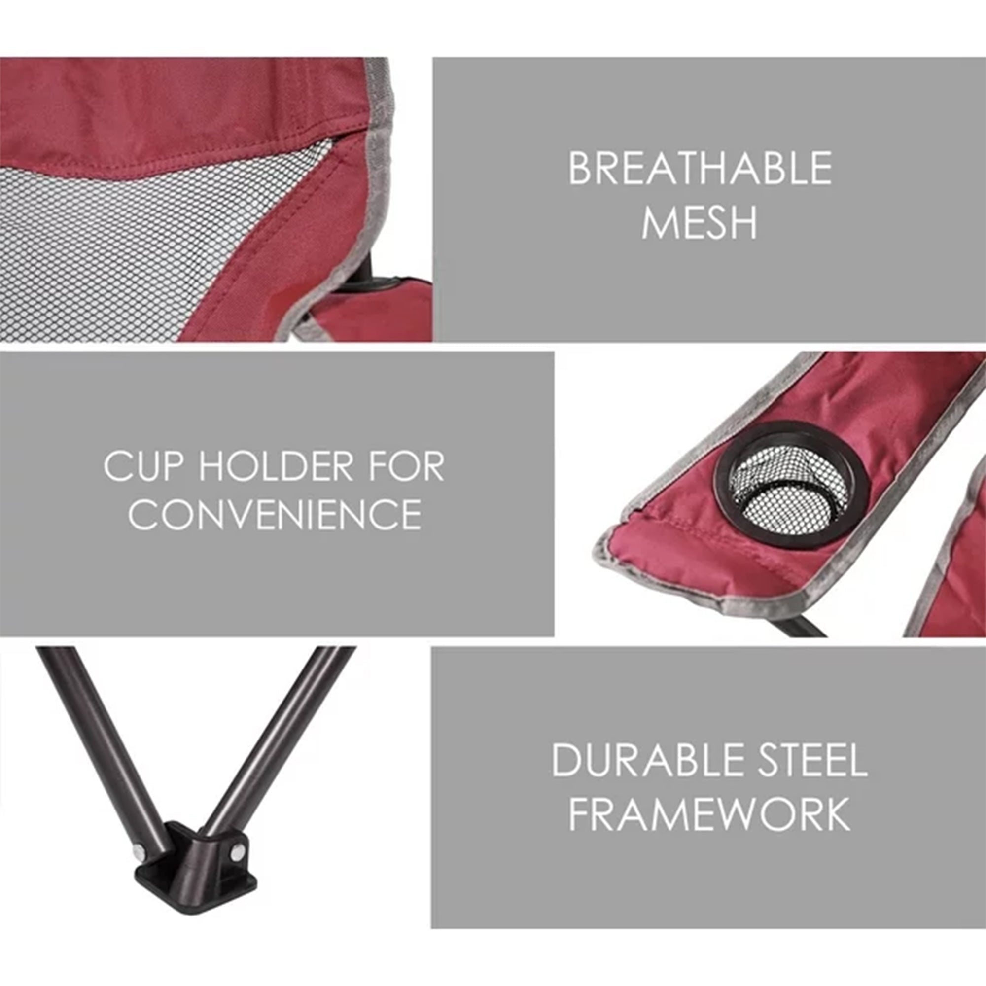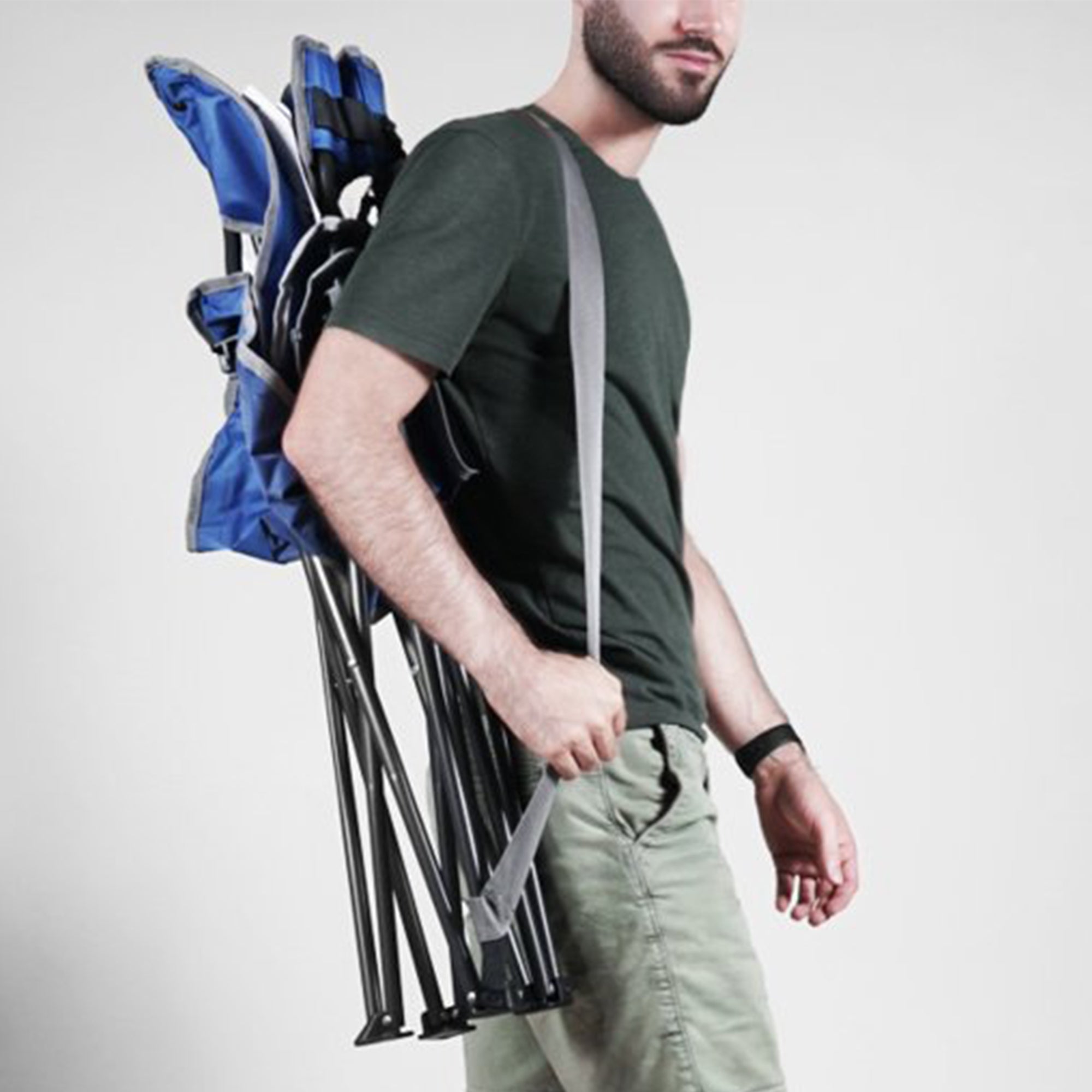 - Set of 4 self-enclosing quad chairs that securely close with a hook and loop strap, eliminating the need for a carry bag and ensuring worry-free transportation