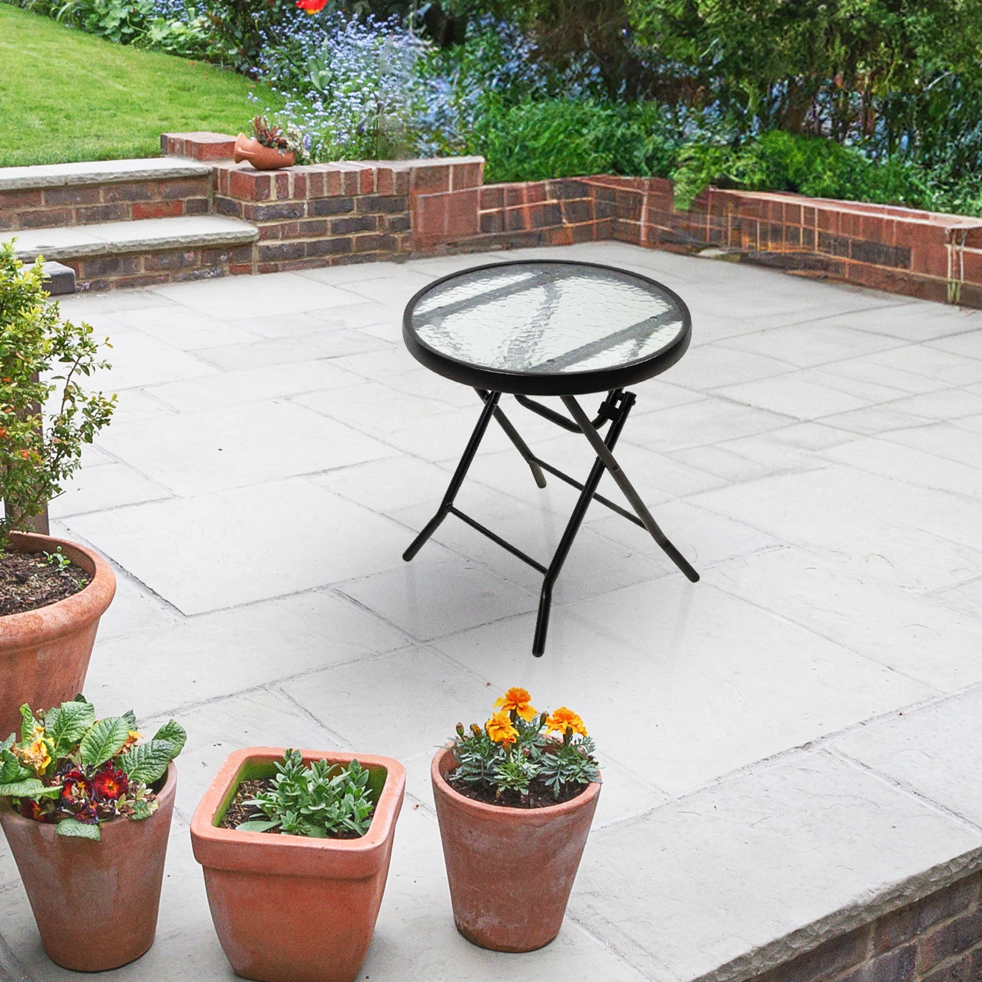 Four Seasons Courtyard Marbella 16 Inch Foldable Steel Round Side Table, Black