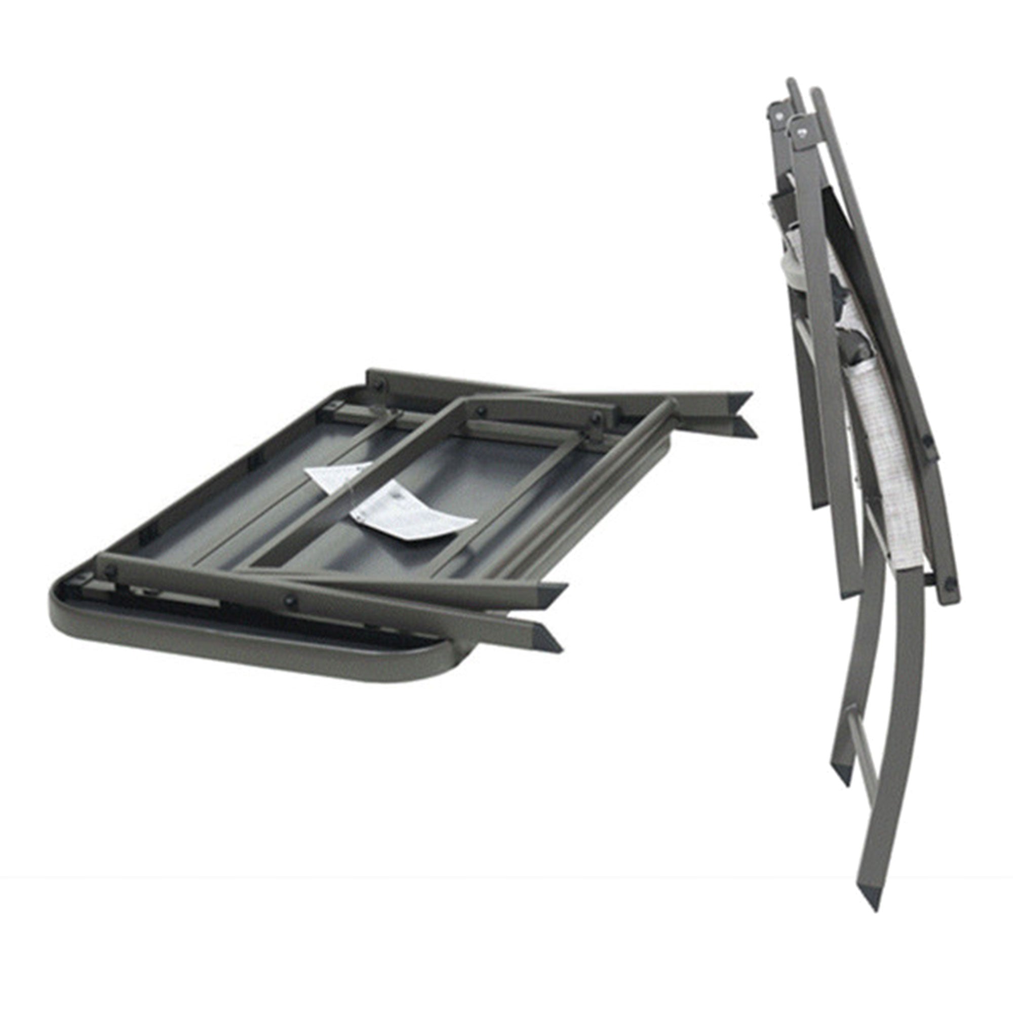 Relax in style on the folding chairs with a comfortable sling seat and back, seamlessly merging ergonomic support with a touch of luxury. These patio essentials offer an ideal seating solution for sun-soaking or engaging conversations. The folding loveseat complements the ensemble, providing a cozy arrangement for intimate gatherings with a seamless blend of comfort and practicality. Coming with a folding feature, this patio set ensures easy storage, catering to those who value versatility without compromising aesthetics. Complete the patio dining set with the folding table featuring a silk-printed glass top, enhancing visual appeal and offering a functional bistro table surface for beverages or decorative accents. The meticulous design reflects a commitment to quality, ensuring durability and longevity in an indoor sunroom or any outdoor setting.