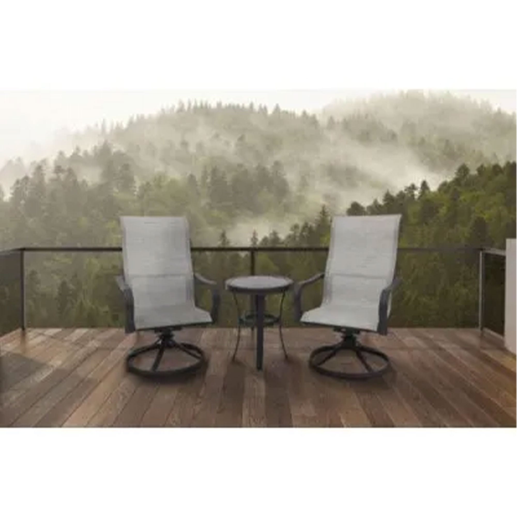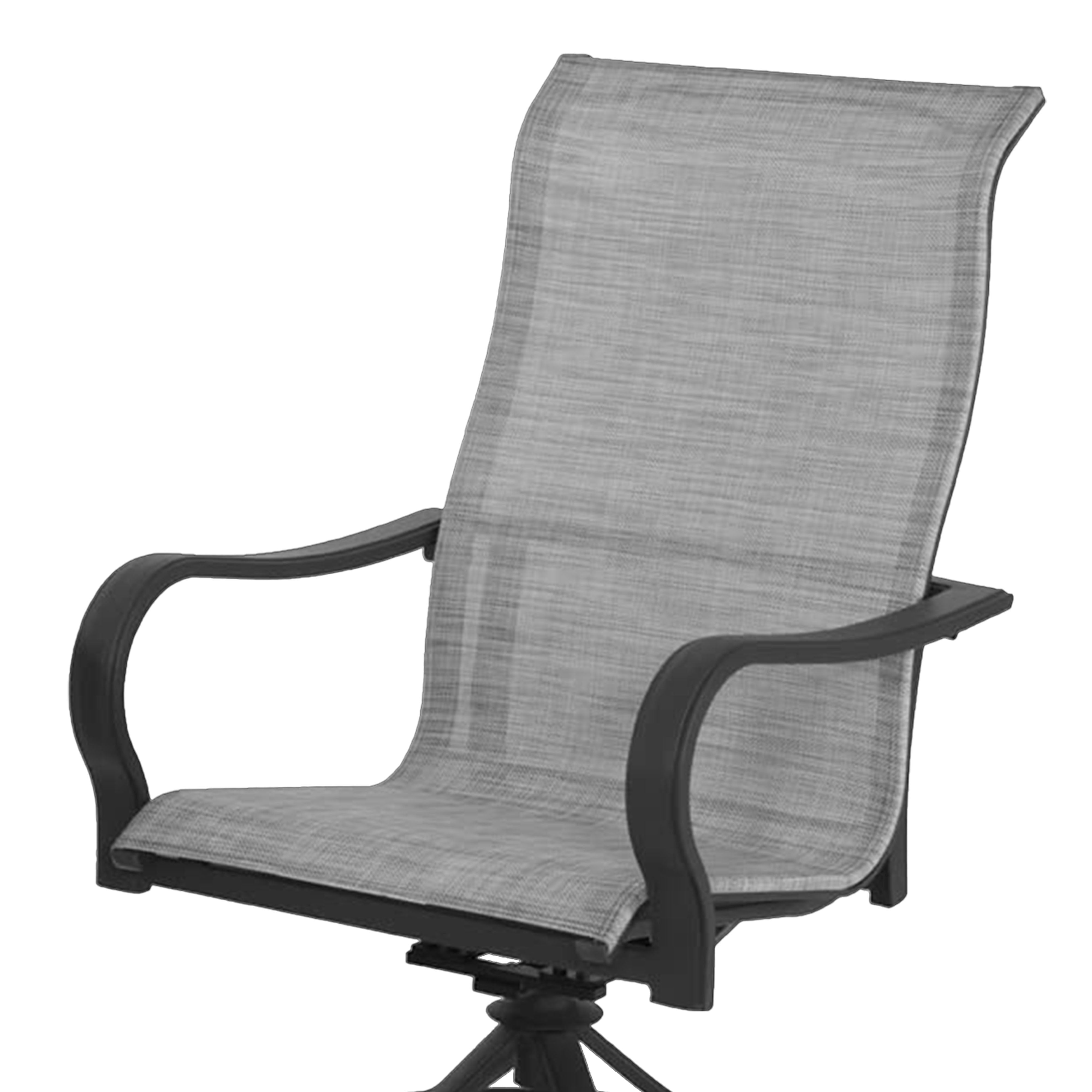 • Furniture set featuring swivel rockers with a sophisticated dark gray finish, coupled with a light gray sling for an impeccable outdoor aesthetic