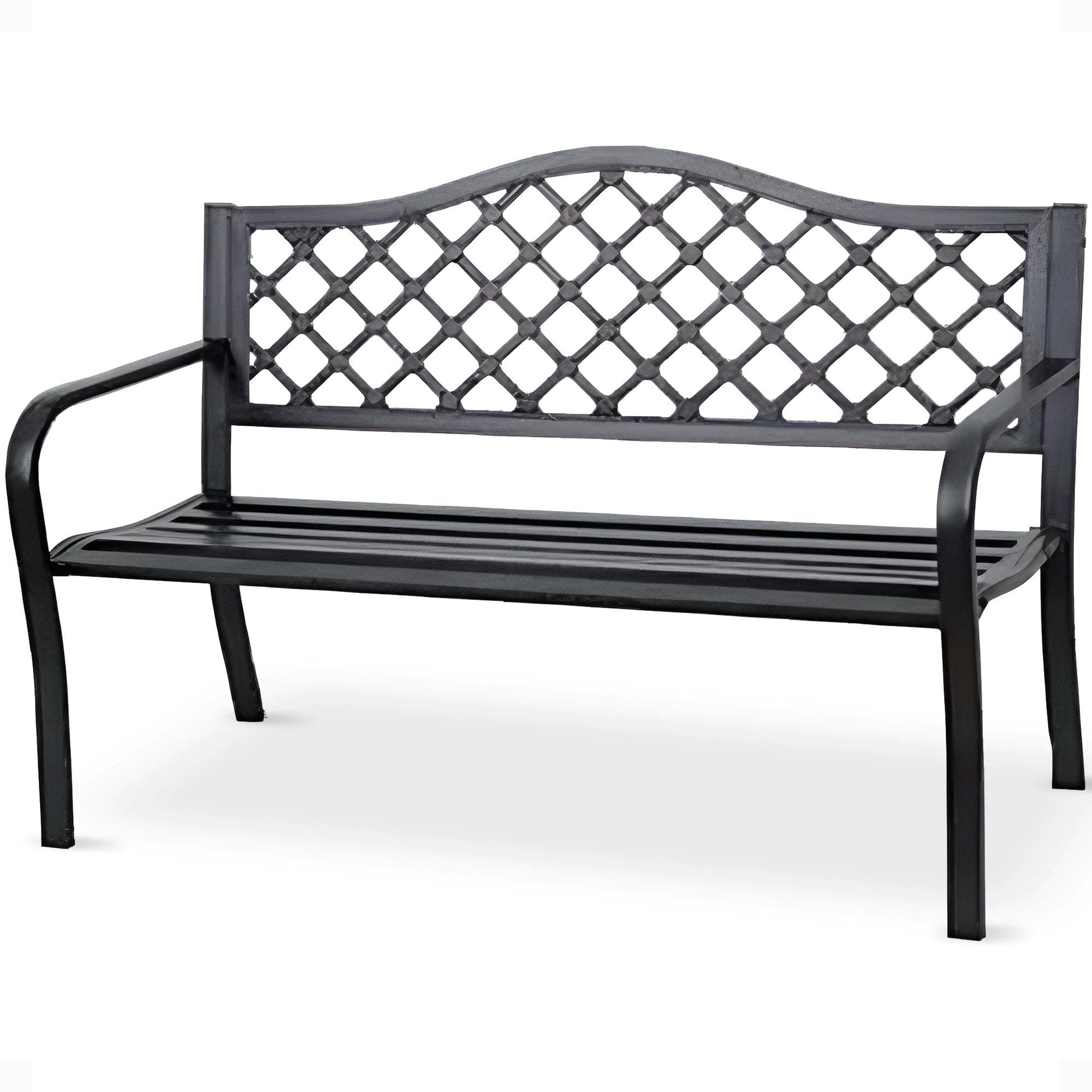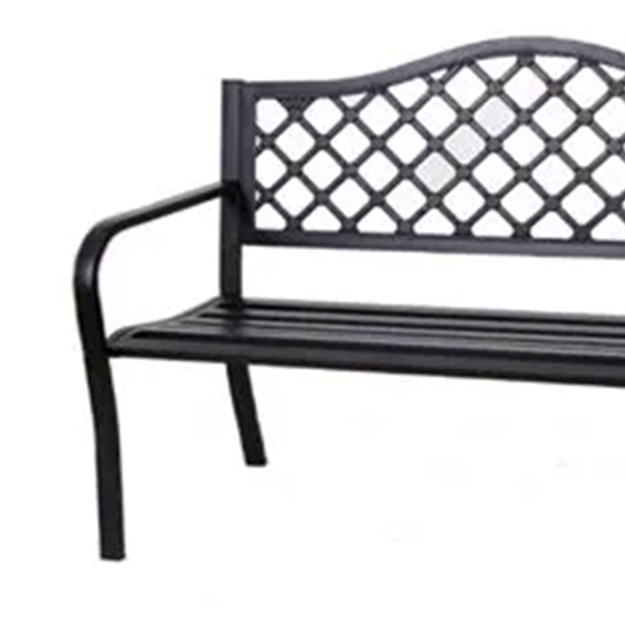 Four Seasons Courtyard Steel Park Bench with Lattice Seat Back Design, Black