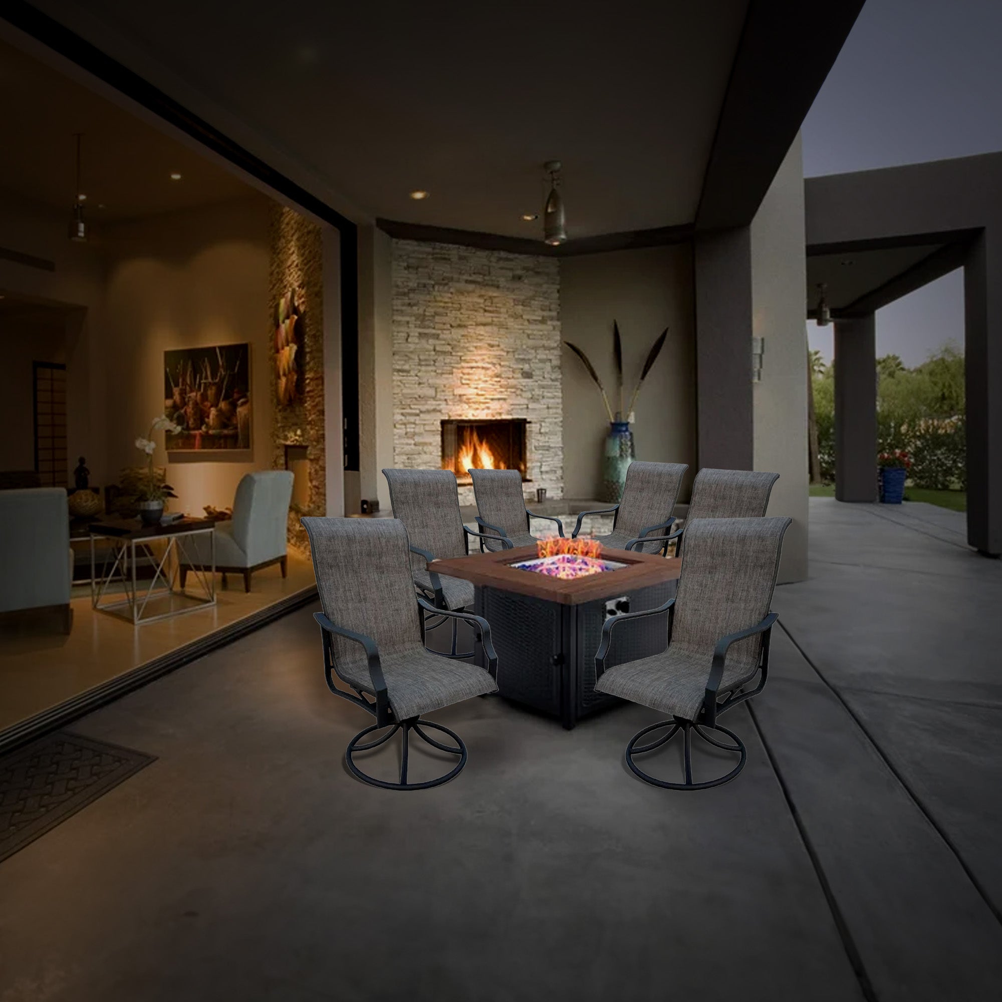 Elevate your outdoor experience with the Four Seasons Courtyard Tuscany 6-Piece Swivel Rocker Chair Set, where form meets function in a symphony of style. Beautiful furniture never fails to make an impact, and this set is no exception. Whether you have a spacious backyard or a cozy patio, our aluminum-framed chairs are designed to enhance any outdoor space.